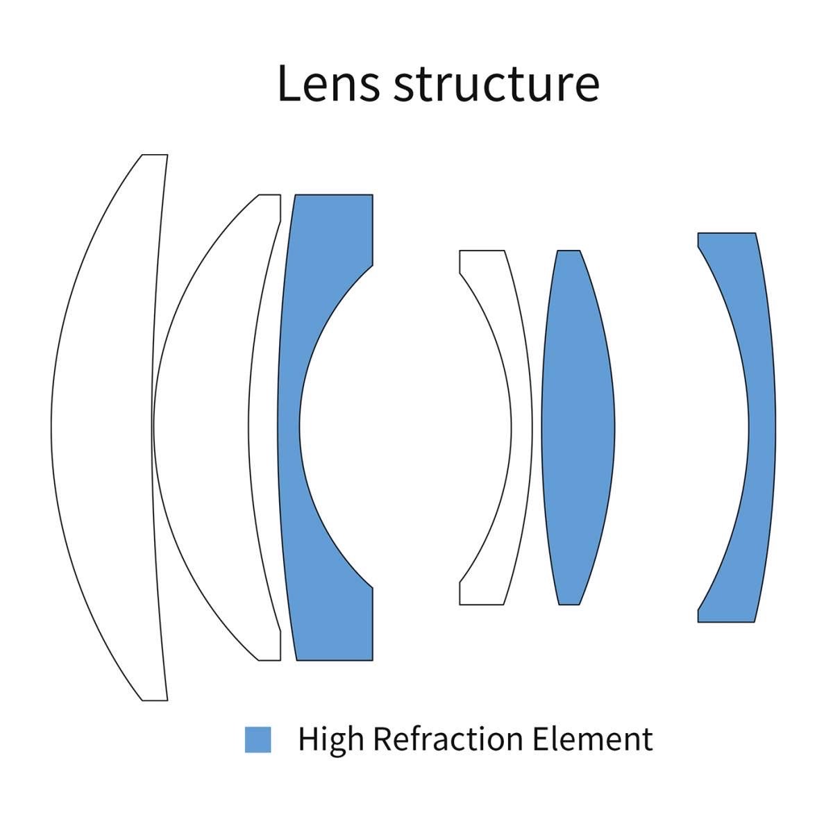 Die optische Konstruktion besteht aus 6 Linsenelementen in 6 Gruppen und sorgt für eine gleichmäßige Bildqualität über das gesamte Bildfeld. Die mehrschichtige Vergütung reduziert Reflexionen und Streulicht für kontrastreiche Aufnahmen.