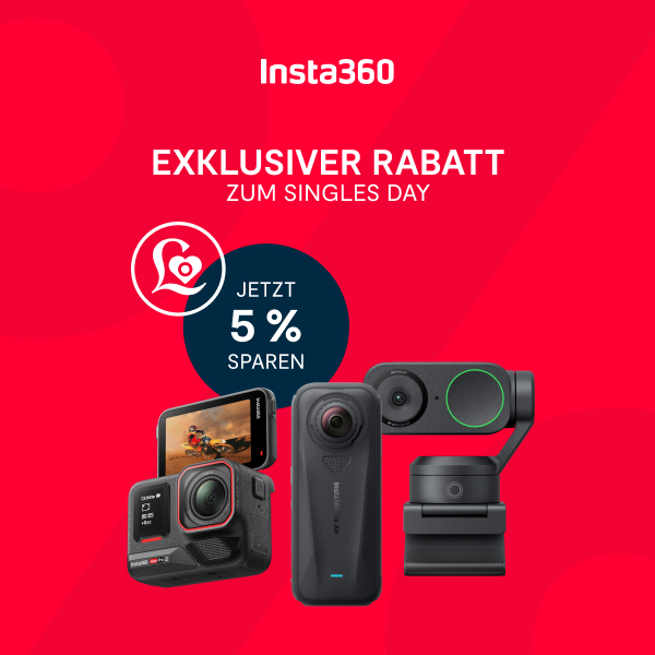 Profitieren Sie am 11. November von unserem exklusiven Singles-Day-Angebot: 5 % Rabatt auf alle vorrätigen Insta360-Artikel. Sichern Sie sich das Angebot innerhalb des Aktionszeitraums und sparen Sie direkt beim Kauf.