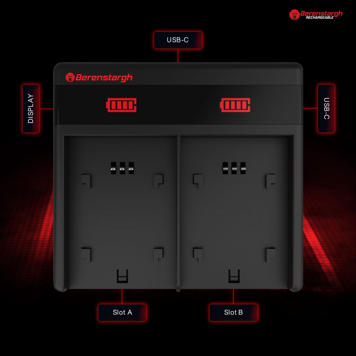 Berenstargh Dual PD Hyper Ladegerät f. Panasonic DMW-BLK2 USB-C in/out Powerbankfunktion
