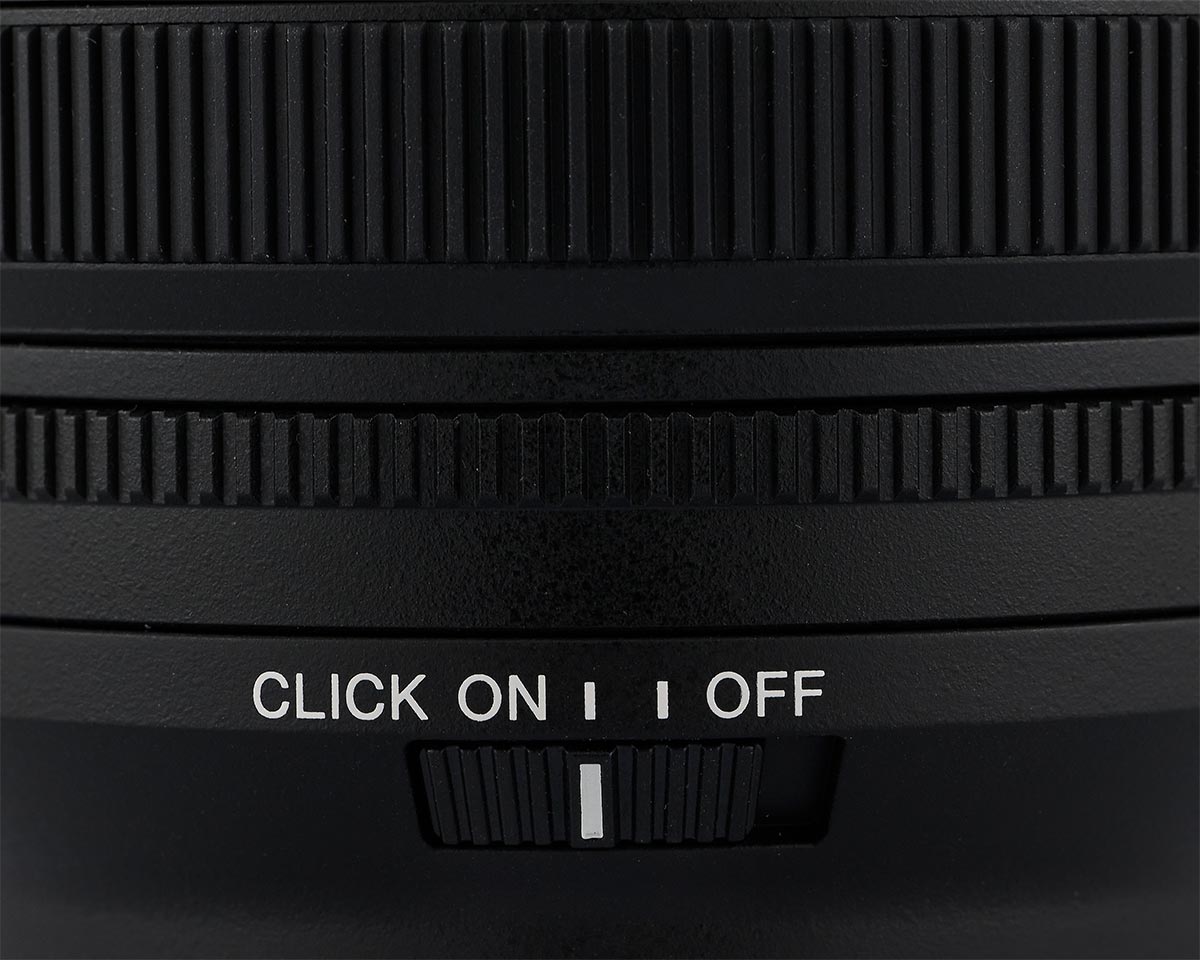 Die Blende lässt sich dabei bequem über den Blendenring am Objektiv einstellen und über einen Schalter haben Sie die Wahl, ob dieser klickbar einrastet oder lautlos und stufenlos arbeitet. Eine nützliche Erweiterung ist die nach Ihren Wünschen belegbare Funktionstaste zwischen Zoom- und Fokusring.