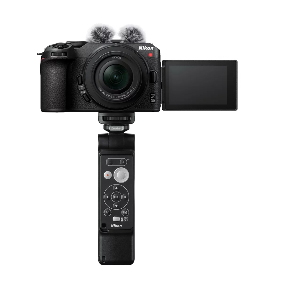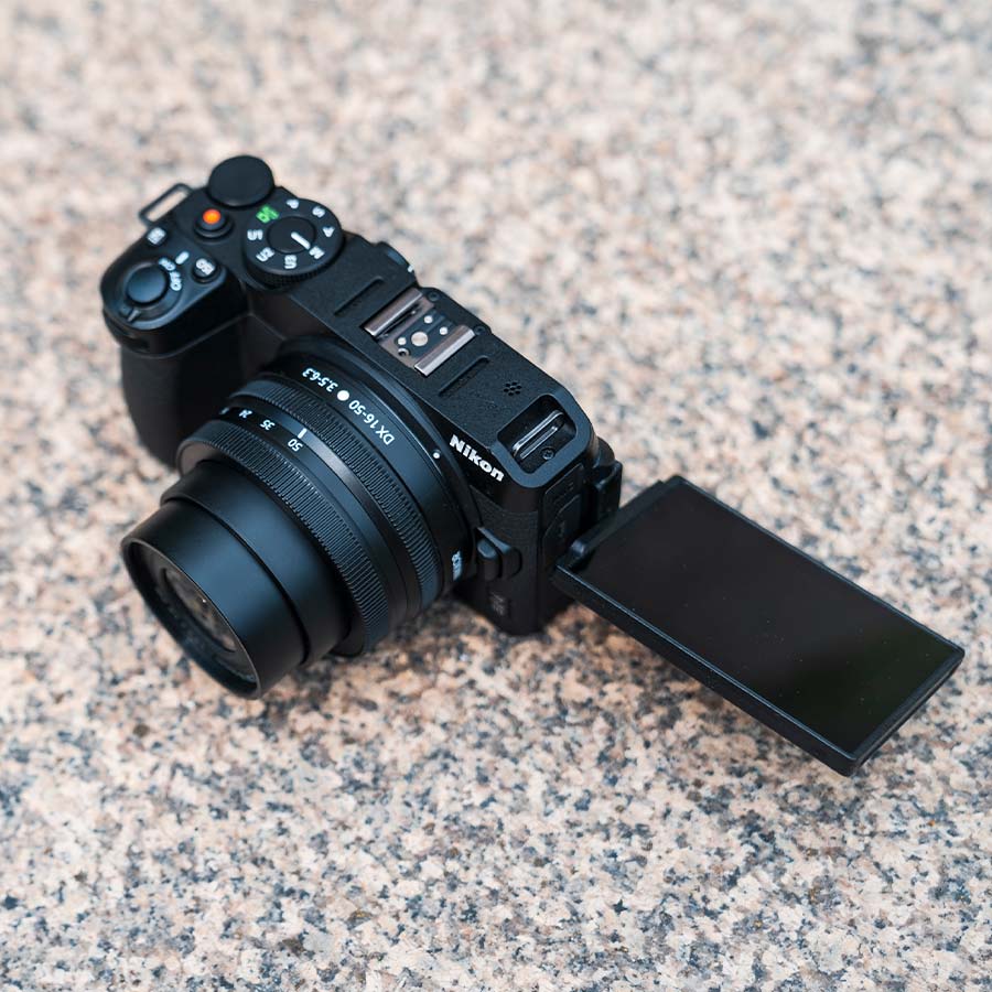 Beginnen wir mit der kleinsten und preiswertesten Nikon APS-C Kamera, der Nikon Z30. Die Kamera überzeugt mit einer guten Grundausstattung und bietet einige Extras, die besonders für Content Creator oder angehende Filmer interessant sind. An der Stelle, an der sich sonst der Sucher befindet, finden wir ein sehr gutes Stereo Mikrofon, welches durch die mitgelieferten Windfänger auch bei Außenaufnahmen für exzellenten Ton sorgt. Sollte das eingebaute Mikrofon in Situationen wie z. B. Interviews mit mehreren Personen nicht ausreichen, bietet die Z30 die Möglichkeit ein externes Mikrofon anzuschließen. Ein weiterer großer Pluspunkt ist das dreh- und schwenkbare Display. Mit diesem können Sie aus jedem erdenklichen Winkel filmen, auch Aufnahmen von sich selbst sind so spielend möglich. Hier hat Nikon mitgedacht und eine LED an der Vorderseite integriert, die aufleuchtet, sobald die Aufnahme läuft. Die Nikon Z30 kann Videos in bis zu 4K bei 30 Bildern pro Sekunde aufnehmen. Für Slow Motion Aufnahmen stehen 120 Bilder pro Sekunde in Full HD zur Verfügung. Für die perfekt sitzende Schärfe bei Videoaufnahmen sorgt ein besonderer Video-Autofokus-Modus, welcher das Motiv immer im Fokus behält, egal ob sich der Bildausschnitt ändert oder sich das Motiv bewegt. Der 21 Megapixel auflösende Sensor macht aber nicht nur bei Filmaufnahmen eine gute Figur, sondern sorgt auch für erstklassige Fotos, egal ob am Tag oder in der Nacht. Die Nikon typische einfache Bedienung findet man auch in der kleinsten Nikon Kamera wieder, so sorgen 2 Einstellräder und mehrere frei belegbare Funktionstasten dafür, dass man die Bedienung nach seinen Vorlieben anpassen kann.