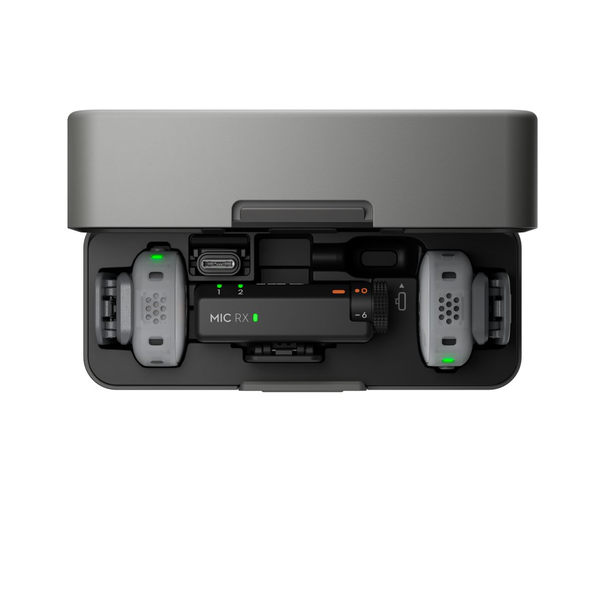 Das DJI Mic Mini 2 (2 TX + 1 RX + Case) zeichnet sich durch ein besonders leichtes und kompaktes Design aus. Die integrierte Ladeschale ermöglicht eine sichere Aufbewahrung aller Komponenten einschließlich Zubehör. Dadurch wird ein schneller Transport sowie ein effizienter Einsatz bei mobilen Produktionen unterstützt.