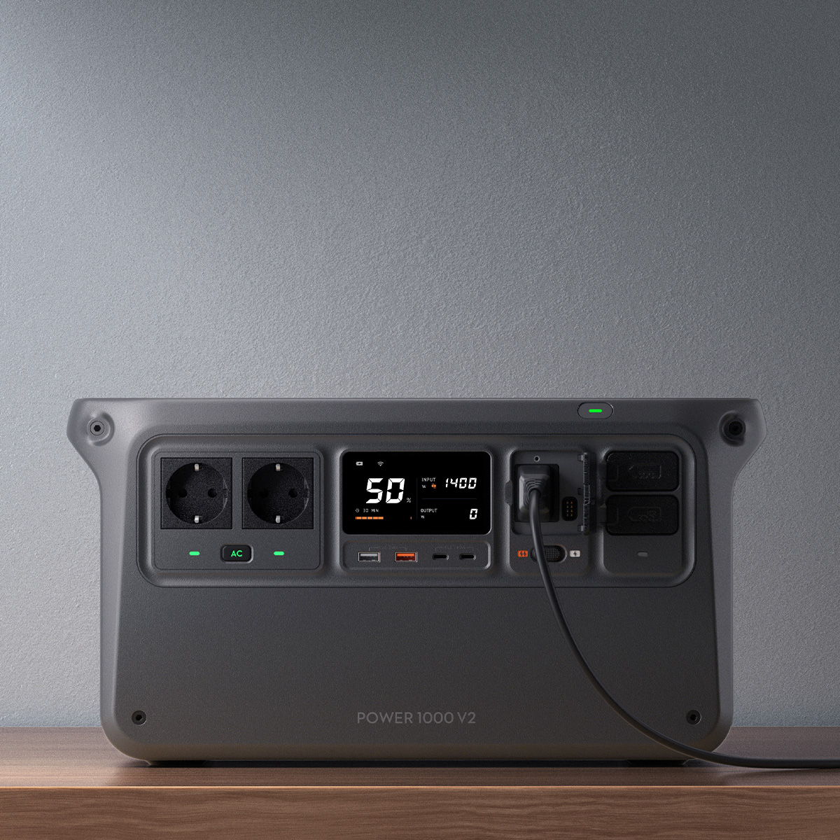 Die DJI Power 1000 V2 liefert eine kontinuierliche Ausgangsleistung von 2600 W, sodass sie selbst energieintensive Haushaltsgeräte problemlos betreiben kann. Damit ist sie ideal für Anwendungen in der Notstromversorgung und im professionellen Einsatz geeignet.