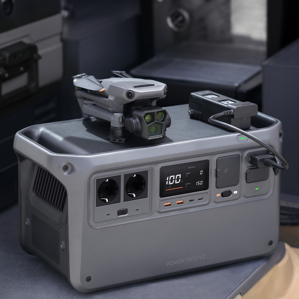 Die DJI Power 1000 V2 eignet sich für den Einsatz beim Camping, bei Filmproduktionen im Freien, als Notstromlösung zuhause und für professionelle Anwendungen mit hohem Energiebedarf. Sie versorgt zuverlässig Kameras, Beleuchtung, Laptops, Haushaltsgeräte und DJI-Drohnen mit Strom.