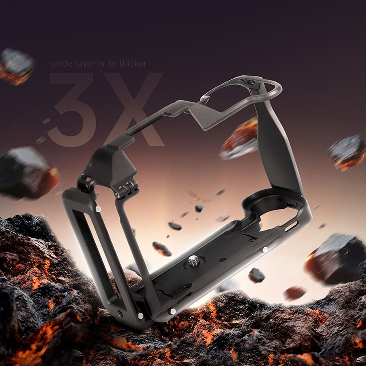 Ein hochwertiger Kamerakäfig erweitert die Einsatzmöglichkeiten und schützt gleichzeitig empfindliche Kamerakomponenten. Die Konstruktion aus Aluminium ermöglicht eine stabile Basis für Zubehör und bietet vielseitige Montagemöglichkeiten innerhalb eines modularen Systems. Durch die nahtlose Integration bleibt die ursprüngliche Form der Kamera erhalten, während gleichzeitig flexible Wechsel zwischen unterschiedlichen Setups unterstützt werden.