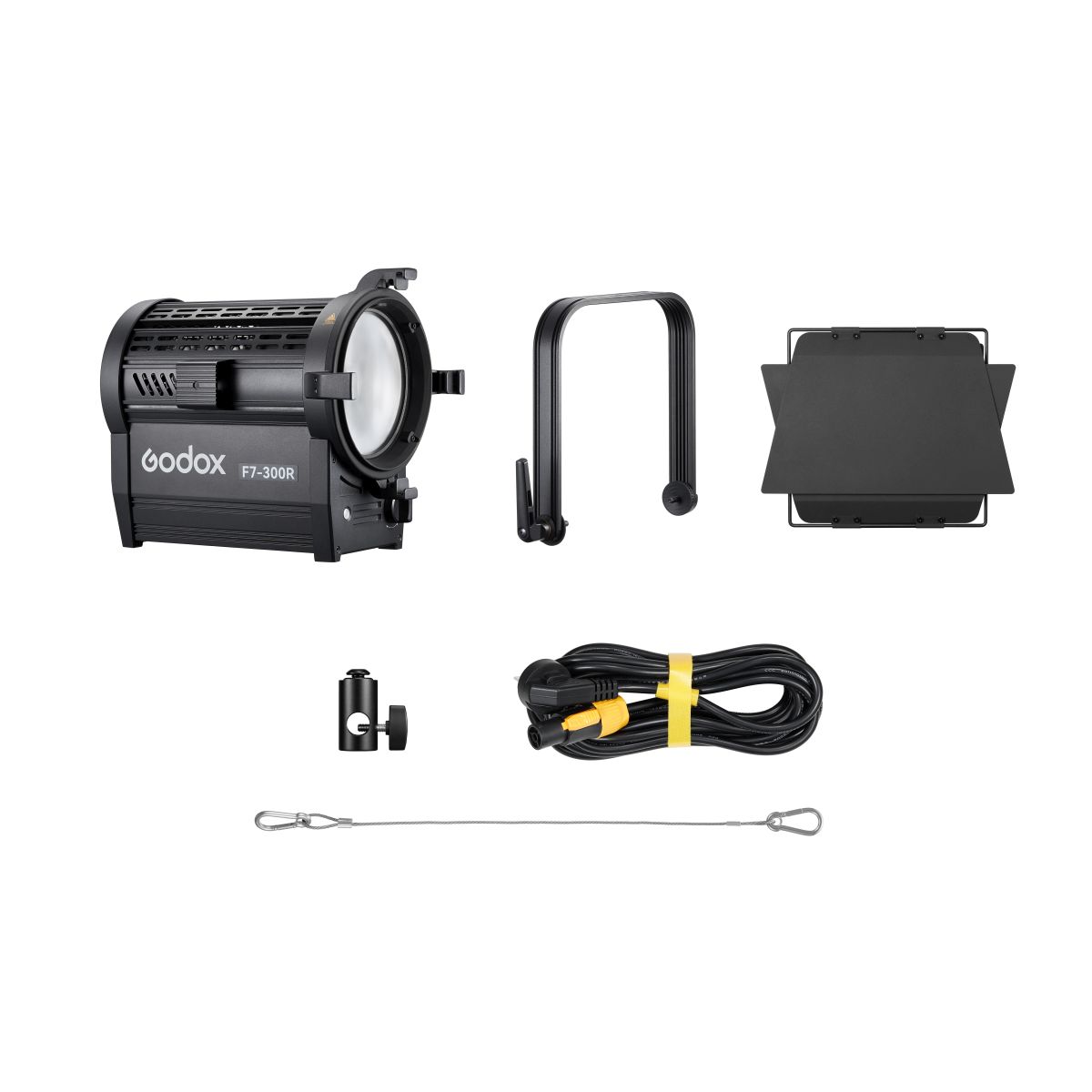 Was ist der Godox F7-300R K1? Der Godox F7-300R K1 ist eine 300-Watt Full-Color LED-Fresnelleuchte mit variablem Abstrahlwinkel und professioneller Farbsteuerung.