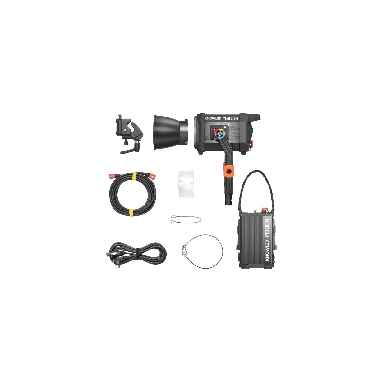 Mit nur 3,6 kg Gewicht (Leuchtenkopf ohne Bügel) ist die M300R leicht zu transportieren und schnell aufzubauen. Das robuste Magnesium-Aluminium-Gehäuse sorgt für eine lange Lebensdauer, während die IP65-Zertifizierung Schutz vor Staub und Strahlwasser bietet. Diese Eigenschaften machen die Leuchte sowohl für den Studioeinsatz als auch für Drehs unter schwierigen Wetterbedingungen zuverlässig einsetzbar.