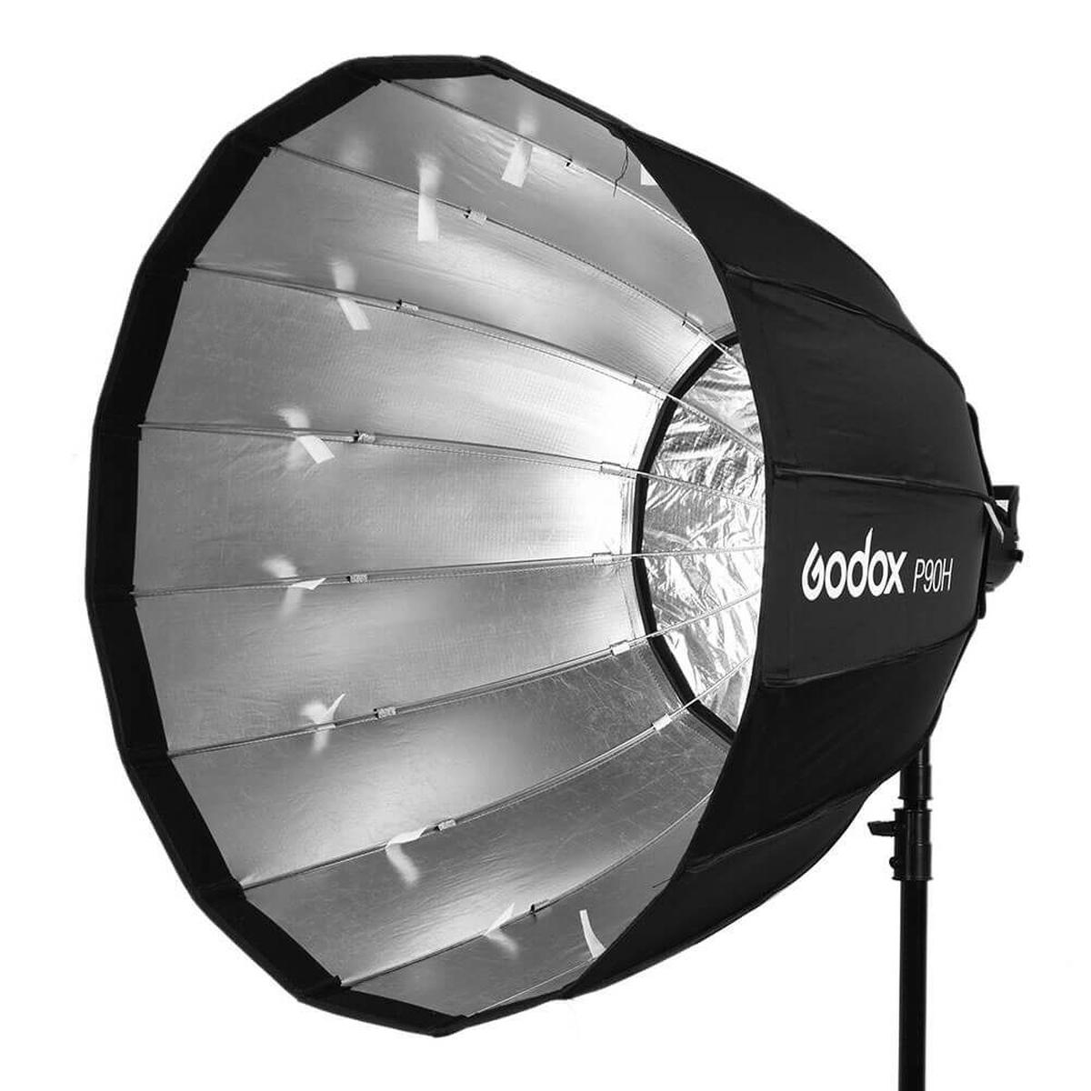 Was ist die Godox P90H? Die Godox P90H ist eine hochwertige, parabolische Softbox, die für die Verwendung mit Bowens-Blitzgeräten konzipiert ist.