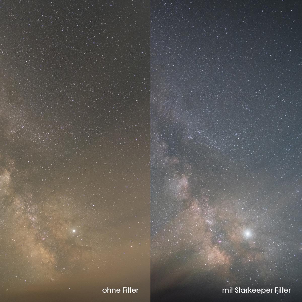 Der H&Y HD Starkeeper Einschraubfilter ist besonders effektiv in der Astrofotografie, da er Mischlicht von städtischen Lichtquellen reduziert. Dies führt zu einer erheblichen Verbesserung der Bildqualität, insbesondere bei Nachtaufnahmen, indem unerwünschte Lichtquellen absorbiert werden.