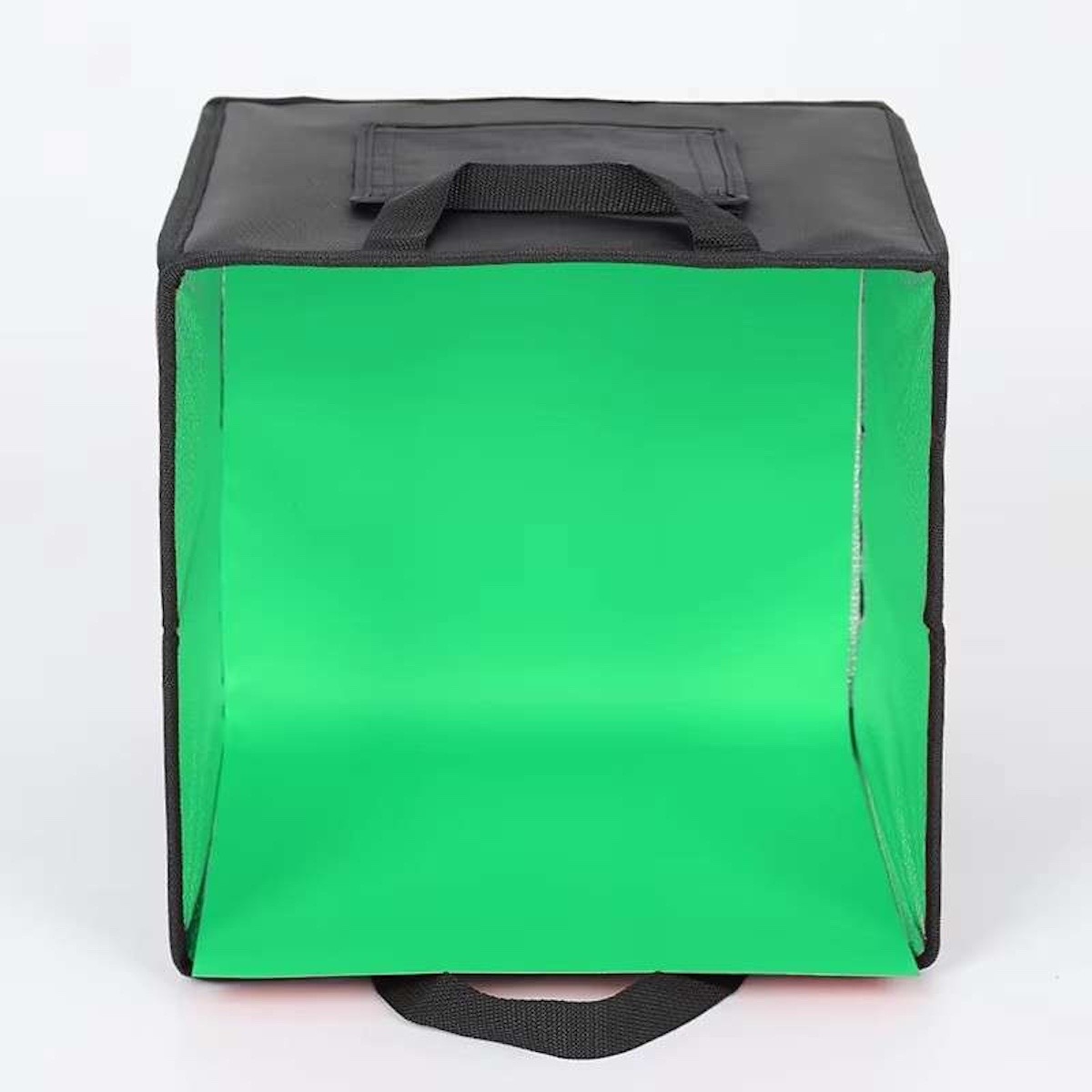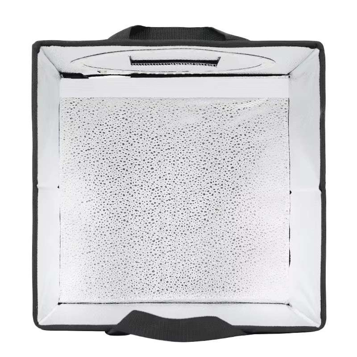 Der Lichtwürfel lässt sich extrem platzsparend zusammenfalten und erreicht eine Dicke von nur etwa 2,5 cm. Der integrierte Tragegriff ermöglicht einen unkomplizierten Transport, sodass das Studio sowohl mobil als auch flexibel am Einsatzort verwendet werden kann.