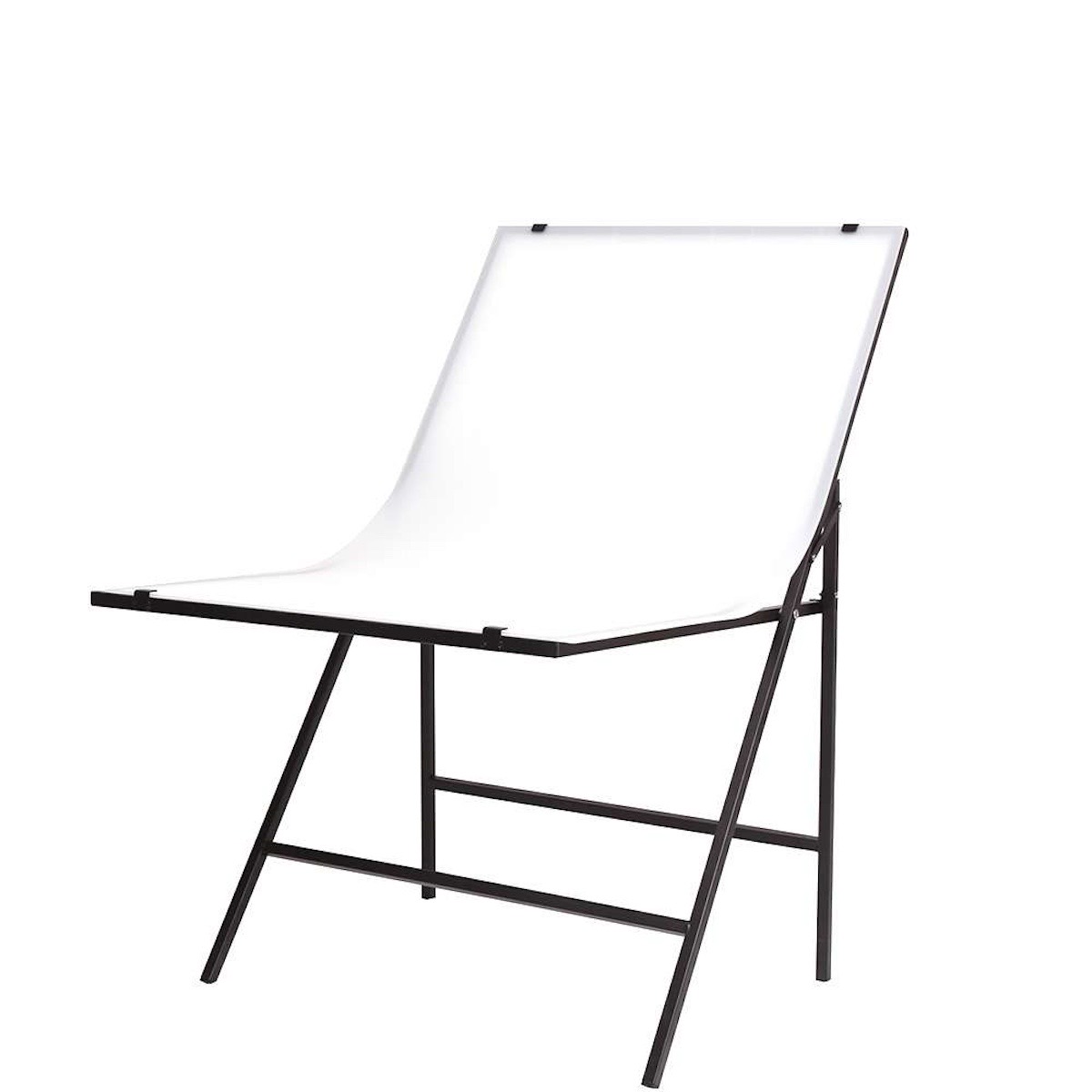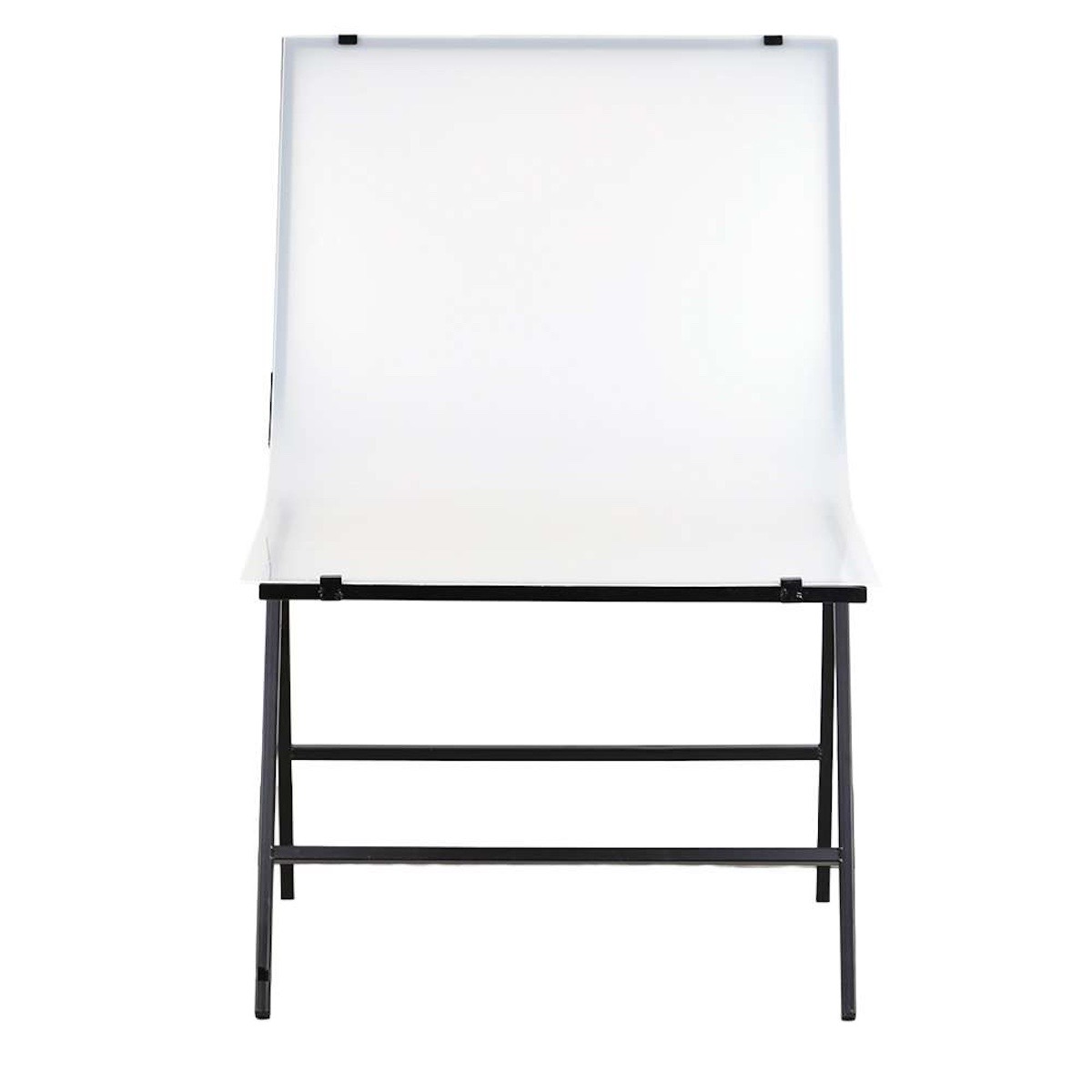Das klappbare Untergestell sorgt für einen stabilen Stand des Aufnahmetischs und ermöglicht die Integration von Unterbeleuchtung. So lassen sich schattenarme, gleichmäßige Lichtverhältnisse realisieren.