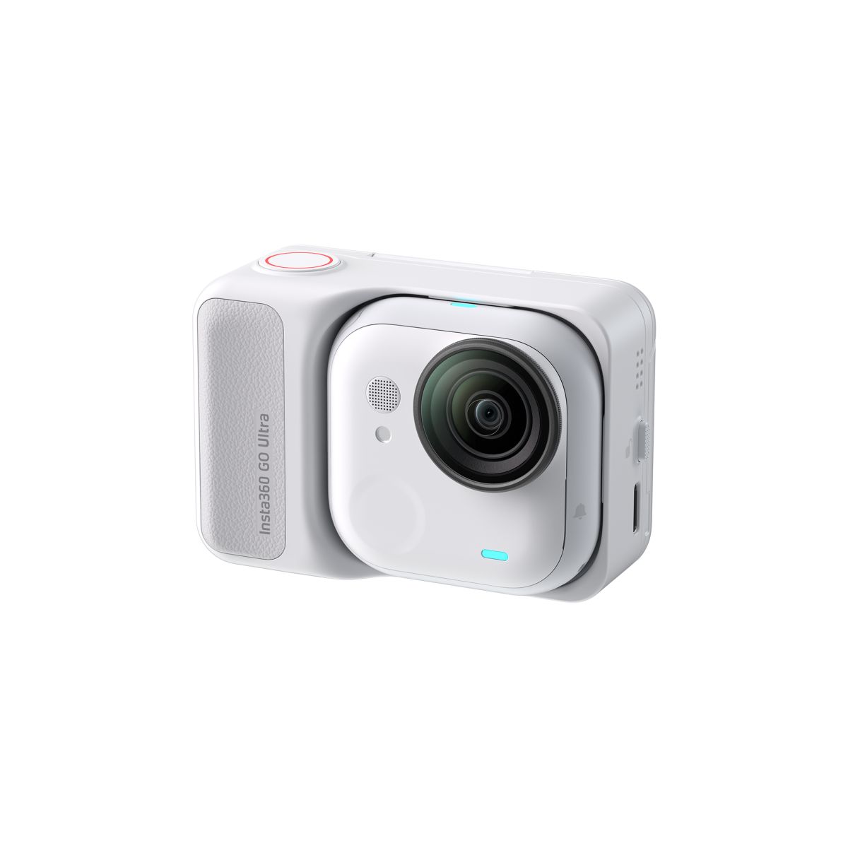 Was ist die Insta360 GO Ultra? Die Insta360 GO Ultra ist eine freihändige 4K-POV-Kamera mit großem 1/1,28"-Sensor, PureVideo-Schwachlichtmodus, magnetischem Befestigungssystem und austauschbarem microSD-Speicher.