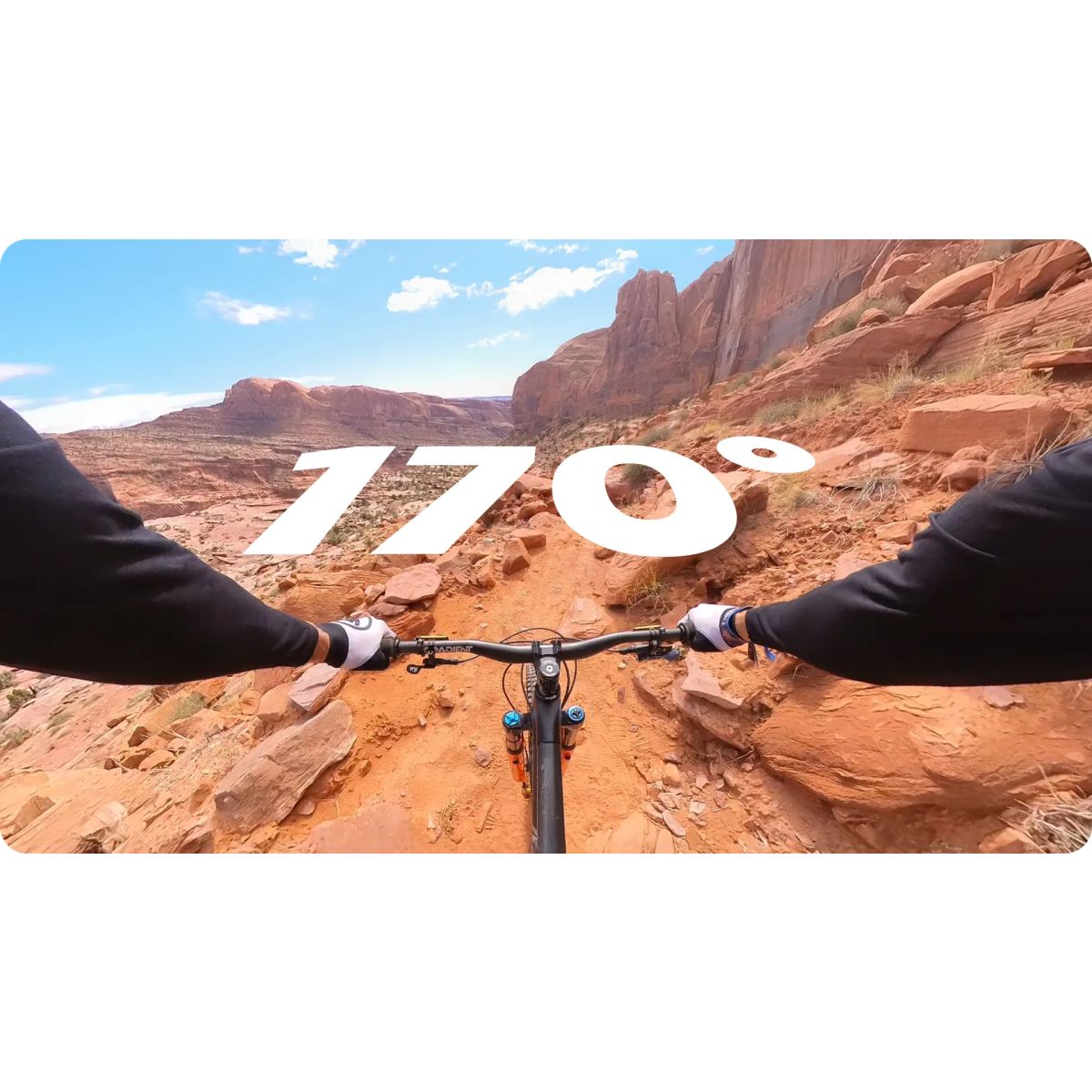 Mit dem FreeFrame-Video im Einzelobjektiv-Modus wird ein ultraweites Sichtfeld von 170° ermöglicht. Dadurch lassen sich mehr Elemente im Vordergrund, wie etwa der Lenker, authentisch und realitätsnah erfassen. Besonders im POV-Einsatz bei Sportarten wie Downhill oder Motorradfahrten verleiht dies den Aufnahmen eine immersive Wirkung.