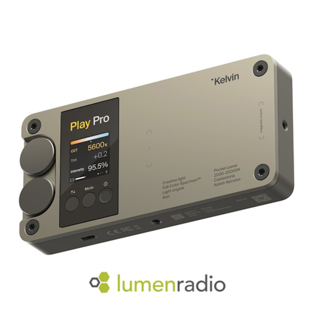 | Verbindungsmöglichkeiten | Wireless DMX (CRMX von LumenRadio), Bluetooth, Kelvin Narrator App für iOS/Android |