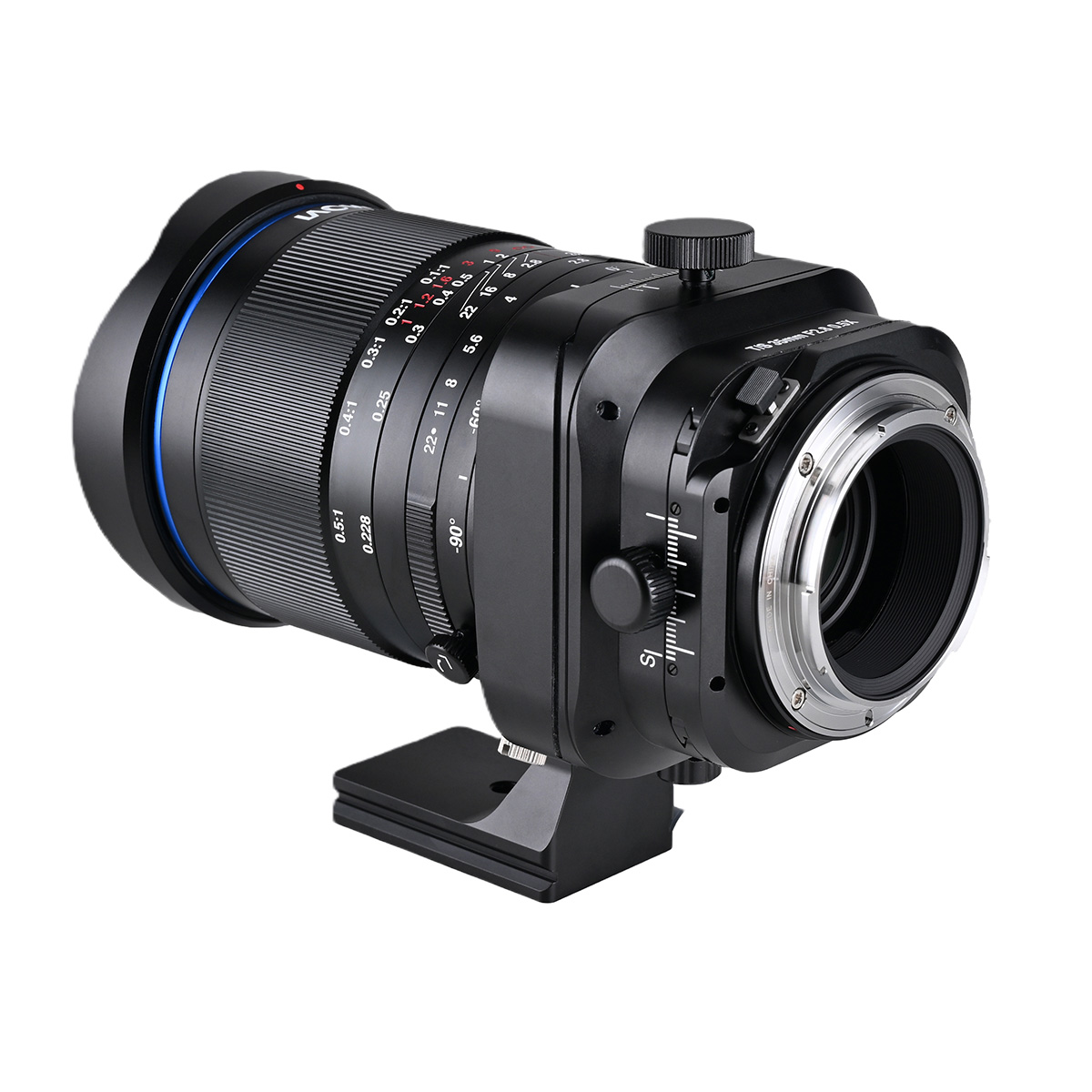 Für maximale Flexibilität im fotografischen Einsatz verfügt das Objektiv über zwei separate Rotationsmechanismen. Die 360°-Anschluss-Rotation mit Rastpunkten alle 15° ermöglicht schnelle, reproduzierbare Positionswechsel. Zusätzlich erlaubt die stufenlos drehbare Stativschelle eine präzise Ausrichtung in jeder gewünschten Position. Dieses Dual-Rotationssystem unterstützt sowohl technische Anwendungen als auch kreative Arbeitsweisen.