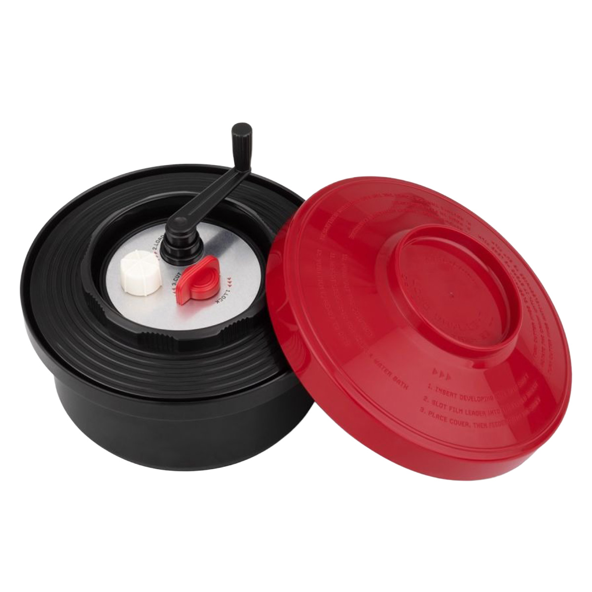 Das integrierte Spulensystem mit Ladekurbel sorgt für ein schnelles und sicheres Einlegen des Films. Innerhalb weniger Sekunden ist der Film korrekt aufgespult und bereit für die Entwicklung. Dies minimiert Fehlerquellen und erleichtert insbesondere Einsteigern den Einstieg in die analoge Filmentwicklung.