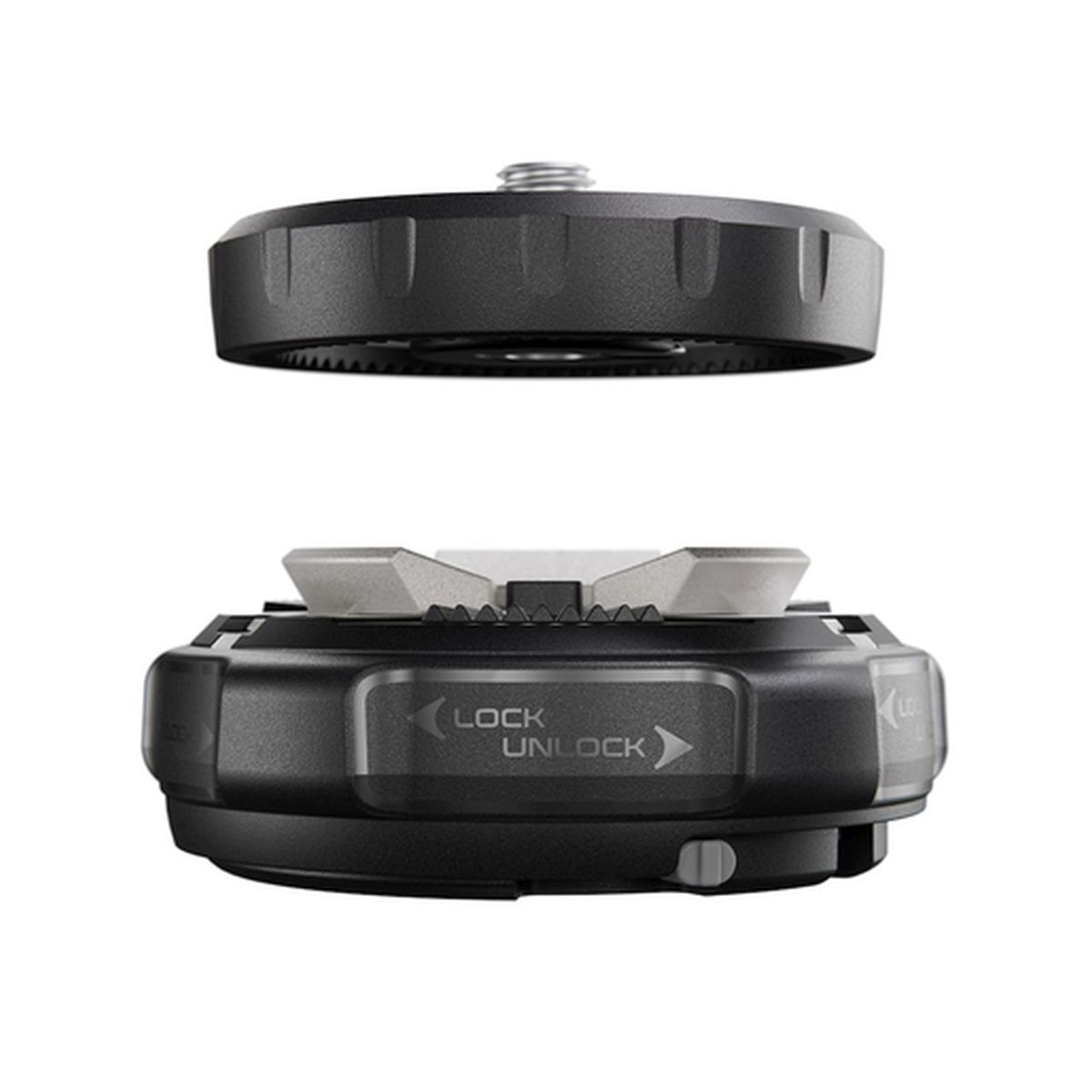 Das Herzstück des Xchange Schnellwechselsystems ist sein intuitiver Verriegelungsmechanismus. Dieser ermöglicht einen werkzeugarmer und schnellen Austausch verschiedenster Zubehörteile wie Kugelköpfe, Fluid-Köpfe oder Slidersysteme. Besonders bei häufig wechselnden Setups verbessert dies die Reaktionsgeschwindigkeit und Effizienz am Set. Das Schnellwechselsystem fördert so einen reibungslosen Workflow.