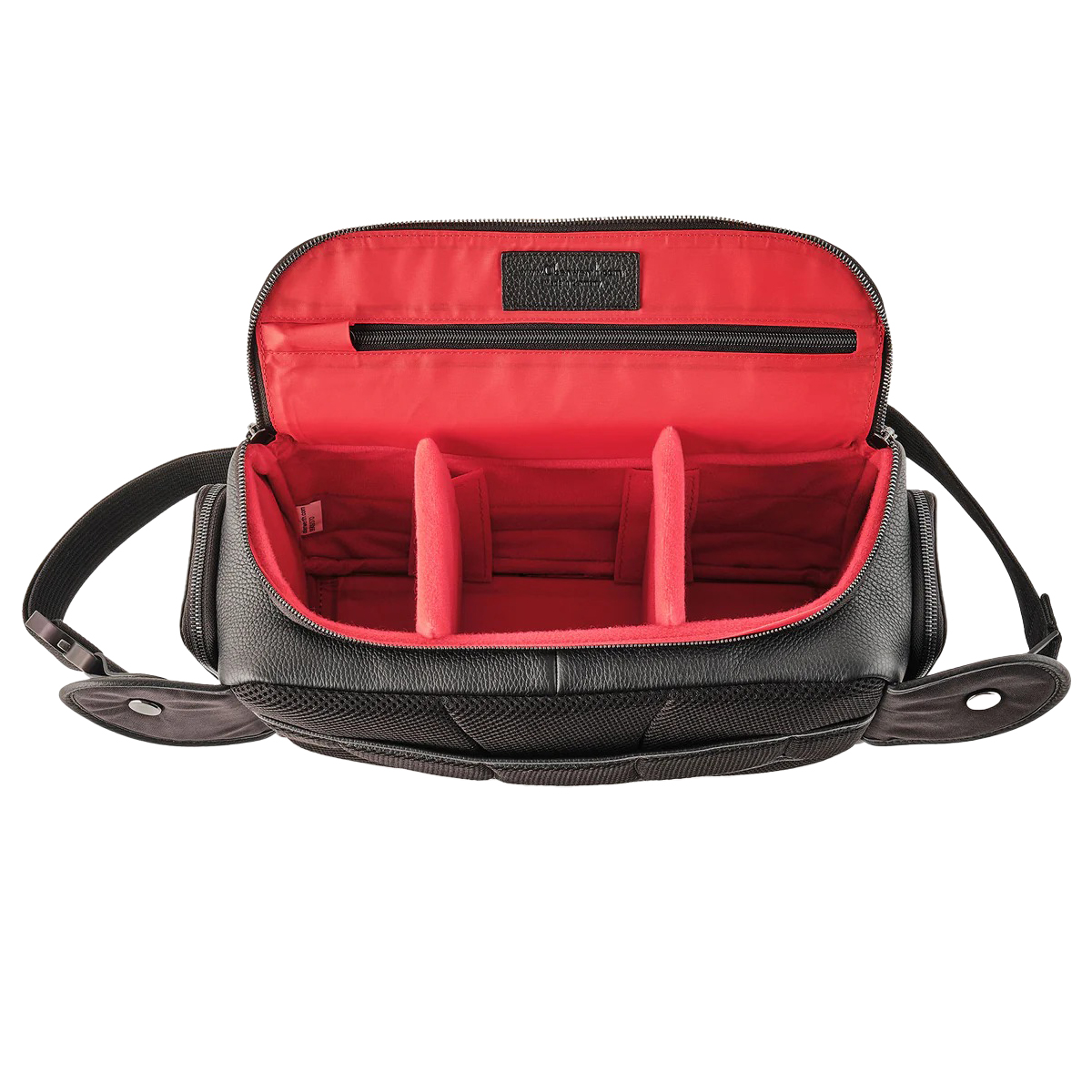 - Geräumiges Hauptfach: Bietet Platz für große Systemkameras wie Leica SL3 oder Hasselblad X2D, auch mit Teleobjektiv.