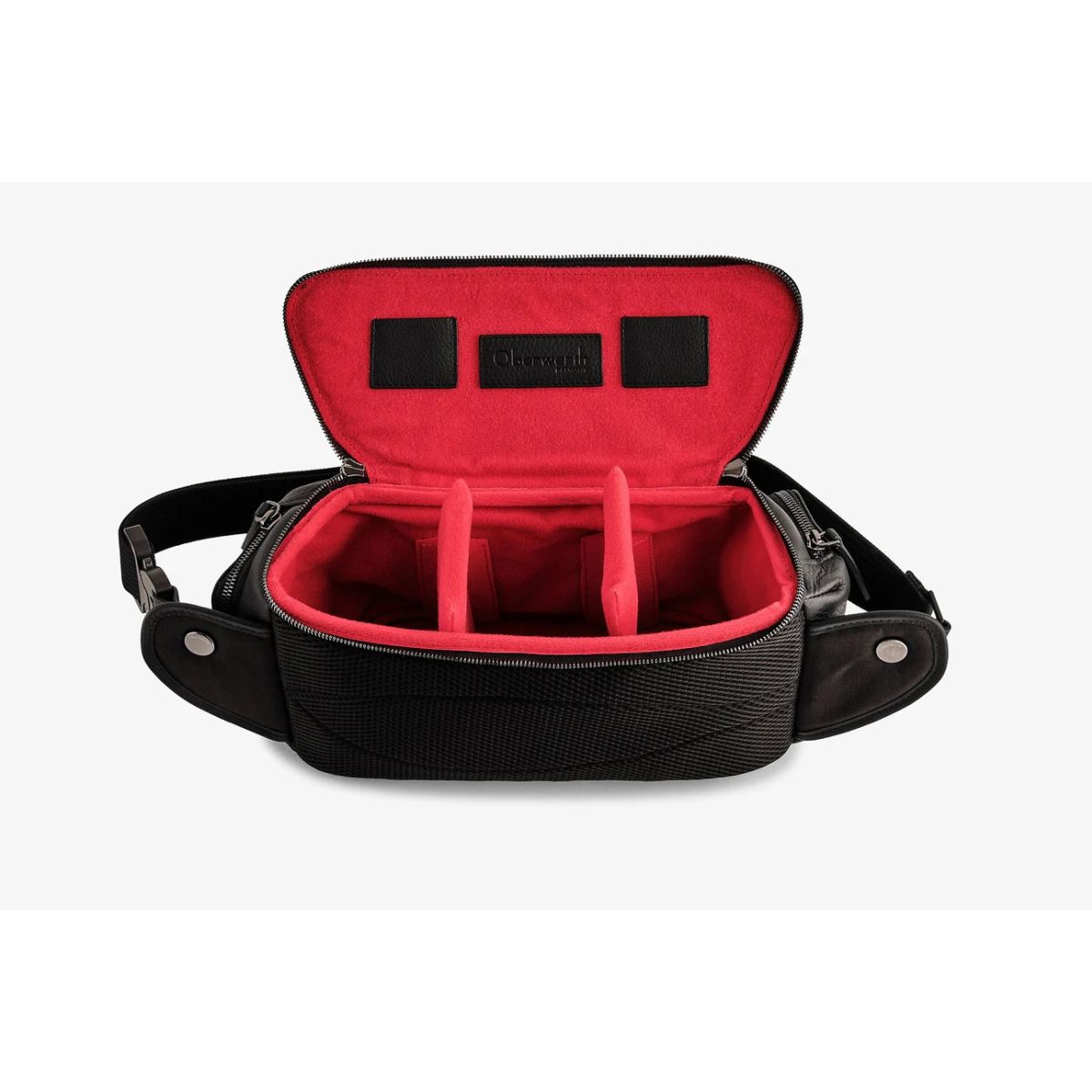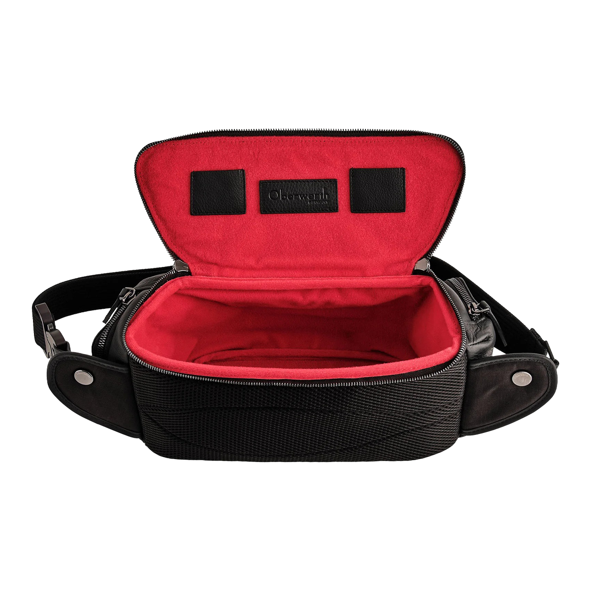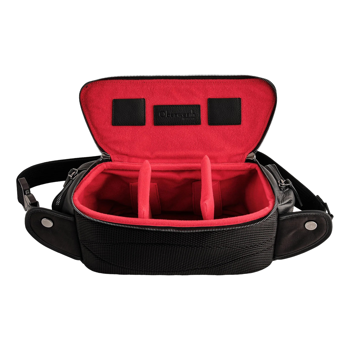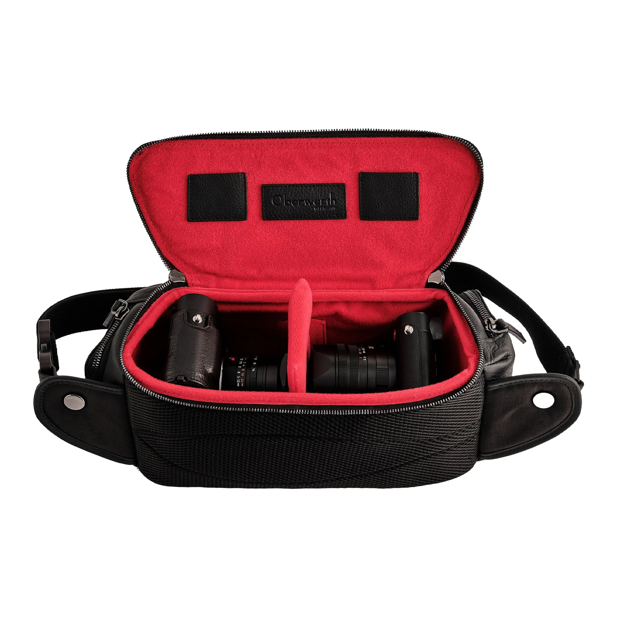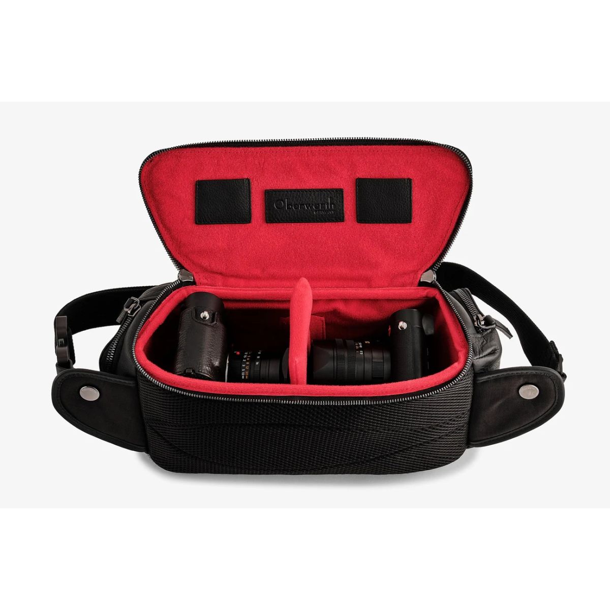 Im Inneren bietet die Oberwerth Sling Leder Schwarz individuell anpassbare Trennwände, mit denen sich Kamera, Objektive und Zubehör flexibel organisieren lassen. Weiche Polsterungen schützen empfindliche Geräte zuverlässig vor Stößen. Separate Fächer und Taschen für Smartphone, Geldbörse oder Speicherkarten ergänzen das funktionale Layout.