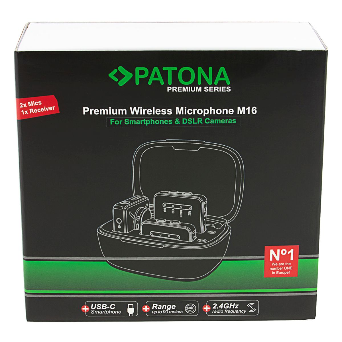 Was ist das PATONA Premium Wireless Mikrofonset M16? Das PATONA Premium Wireless Mikrofonset M16 ist ein kabelloses 2-Kanal-Mikrofonsystem mit Empfänger, Ladecase und professionellen Aufnahmefunktionen.