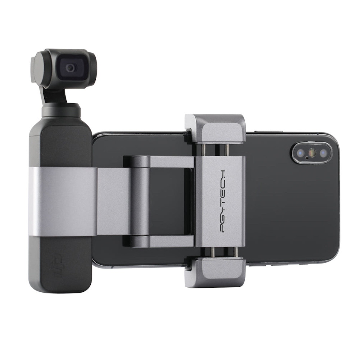 Was ist die PGYTech OSMO Pocket Telefonhalterung+? Die PGYTech OSMO Pocket Telefonhalterung+ ist eine faltbare Aluminiumhalterung zur sicheren Kombination von DJI Osmo Pocket und Smartphone auf Stativen oder Handgriffen.