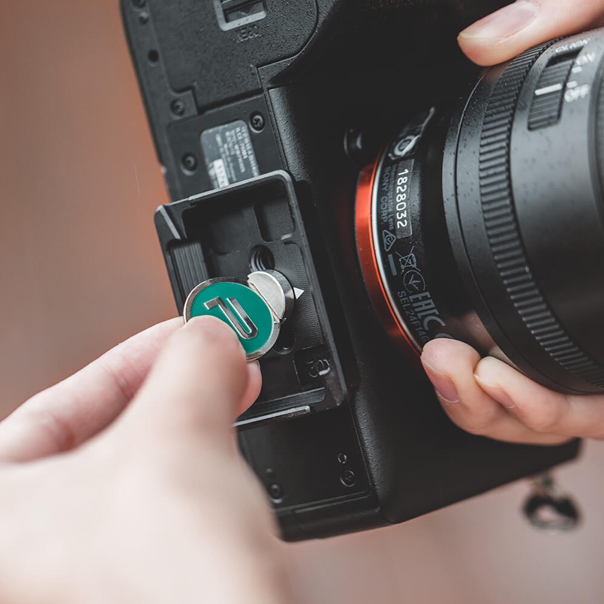 Das Batteriefach verfügt über eine magnetische Anzeige zur Restladung und kann zugleich als Schnellspannschlüssel mit 1/4-Zoll-Gewinde verwendet werden.