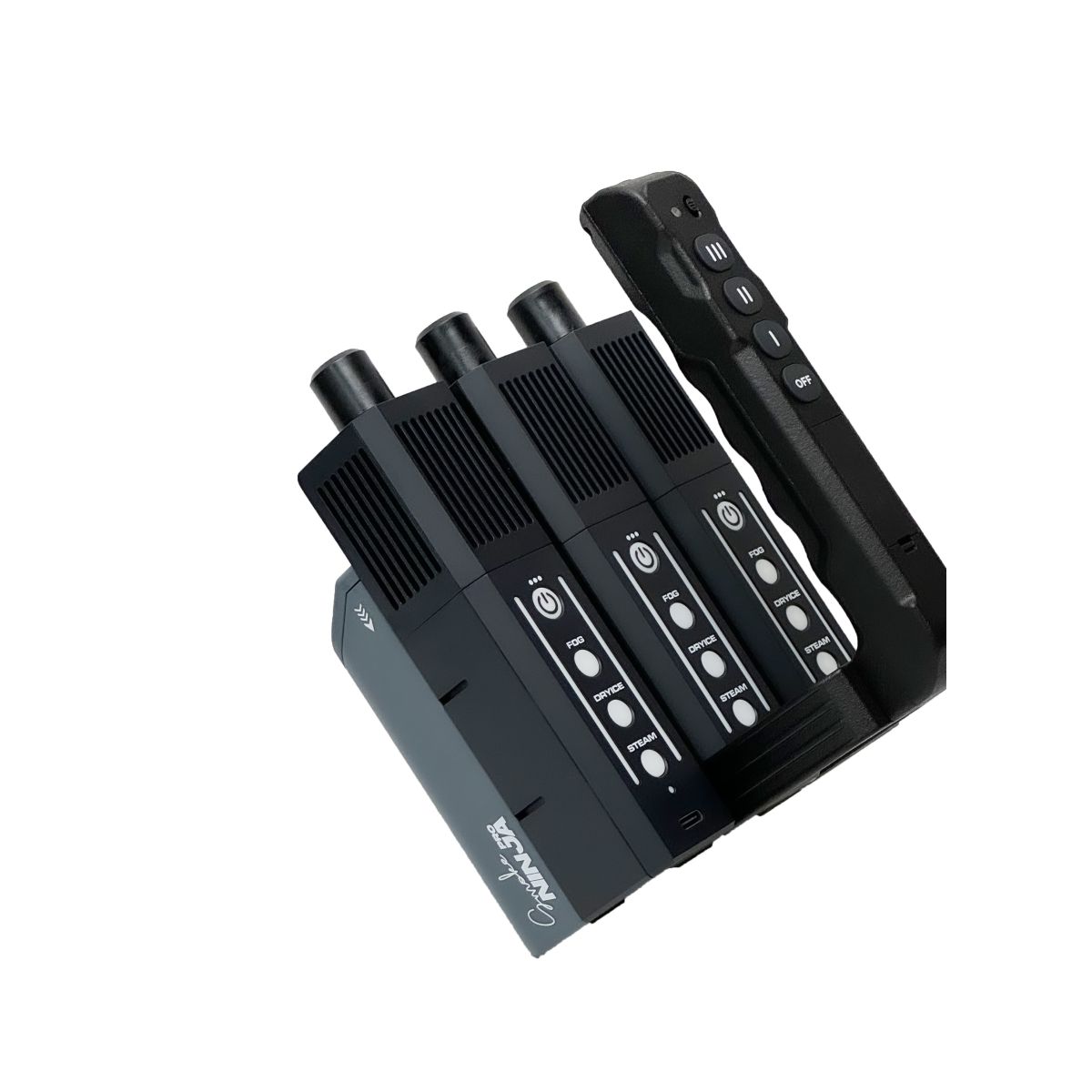 - Kombinierte Hochleistung: Drei SmokeNINJA PRO-Einheiten erzeugen die Leistung einer 1500-Watt-Nebelmaschine.