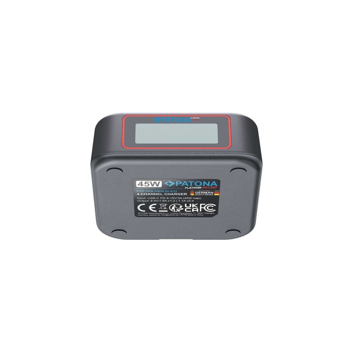 Technische Daten - Patona Platinum USB-C PD QC 4-fach Schnellladegerät für Panasonic DMW-BLK22