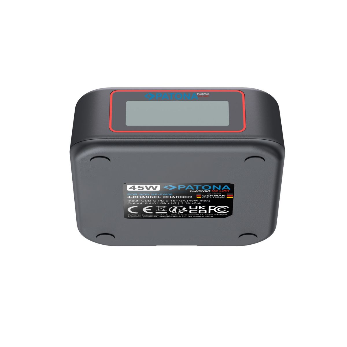 Technische Daten - Patona Platinum USB-C PD QC 4-fach Schnellladegerät für Sony NP-FW50