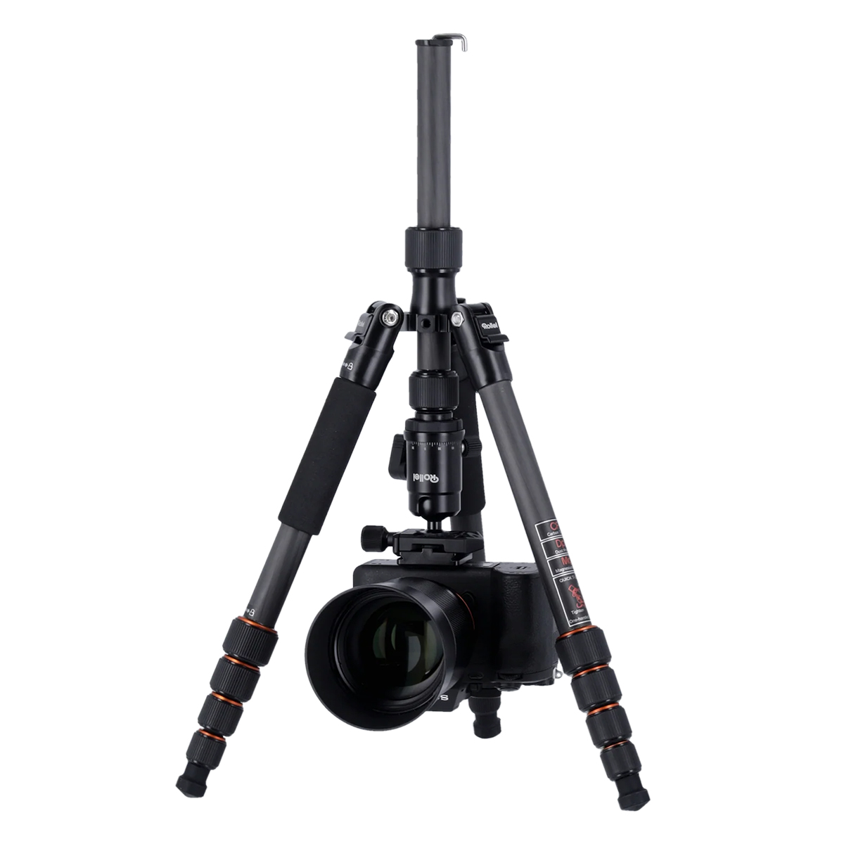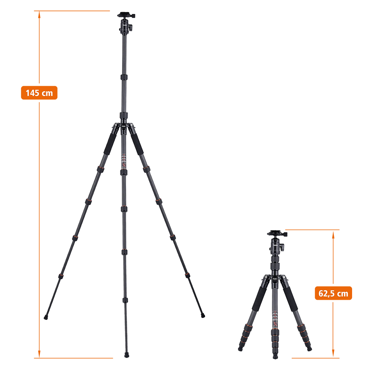 Dank der um 180° klappbaren Stativbeine erreicht das Reisestativ ein besonders kompaktes Packmaß von nur 34,5 cm. Dadurch lässt sich das Rollei Compact Traveler No. 1 Carbon Schwarz problemlos im Rucksack oder im Handgepäck transportieren. Die ergonomischen Drehverschlüsse ermöglichen einen schnellen Aufbau und eine sichere Fixierung der einzelnen Beinsegmente.
