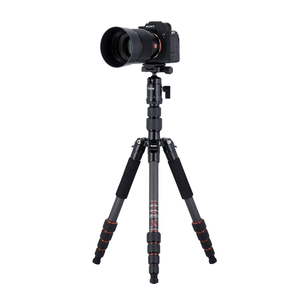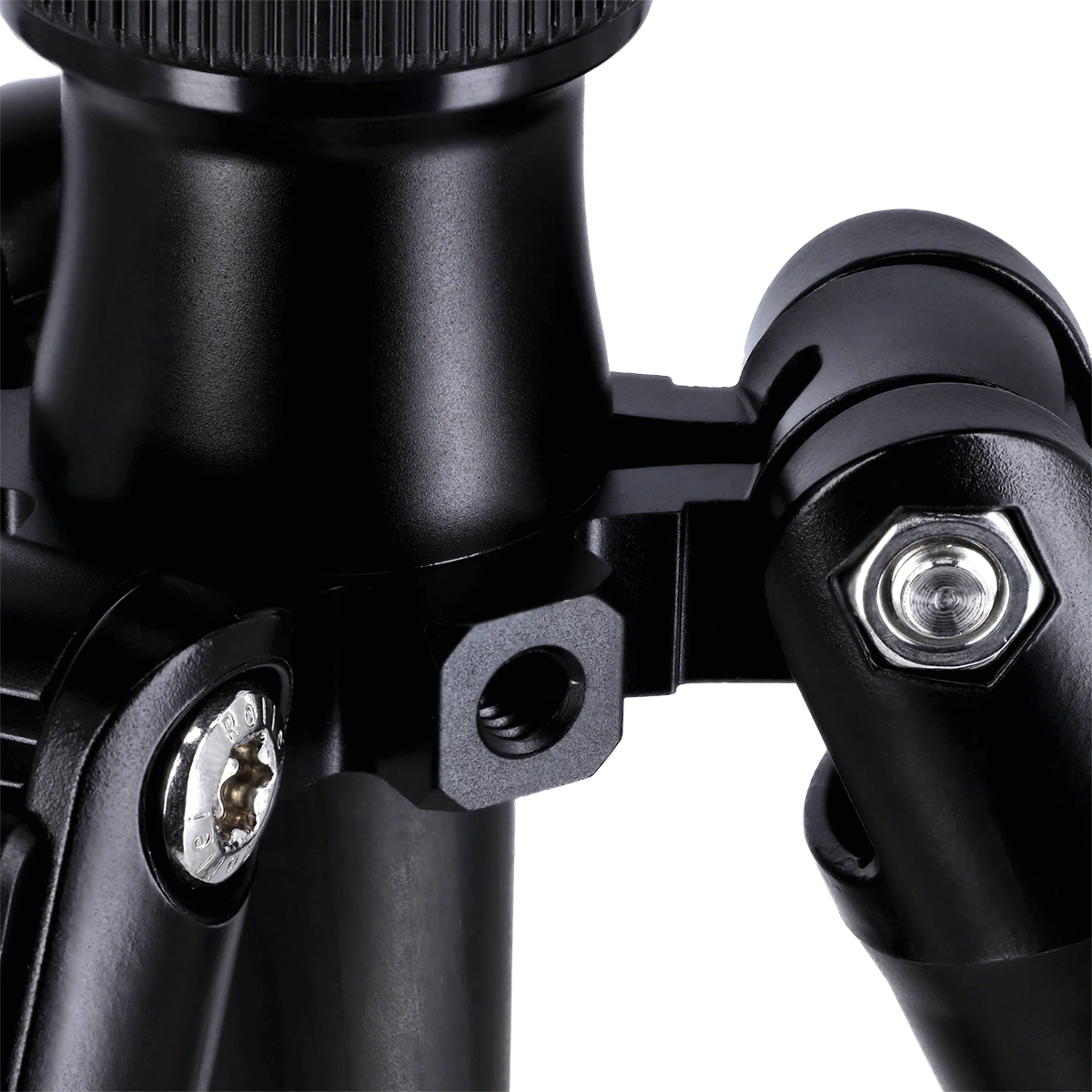 Der integrierte 360°-Kugelkopf erlaubt eine präzise Ausrichtung der Kamera und unterstützt fließende Panorama-Schwenks. Die Arca-Swiss-kompatible Schnellwechselplatte ermöglicht eine schnelle Montage der Kamera und eine hohe Kompatibilität mit Zubehör. Zusätzlich kann das Stativ mit wenigen Handgriffen in ein Einbeinstativ umgebaut werden und bietet damit mehr Flexibilität in Situationen, in denen ein Dreibeinstativ nicht eingesetzt werden kann. Rutschfeste Gummifüße und integrierte Spikes sorgen für sicheren Halt auf verschiedenen Untergründen.