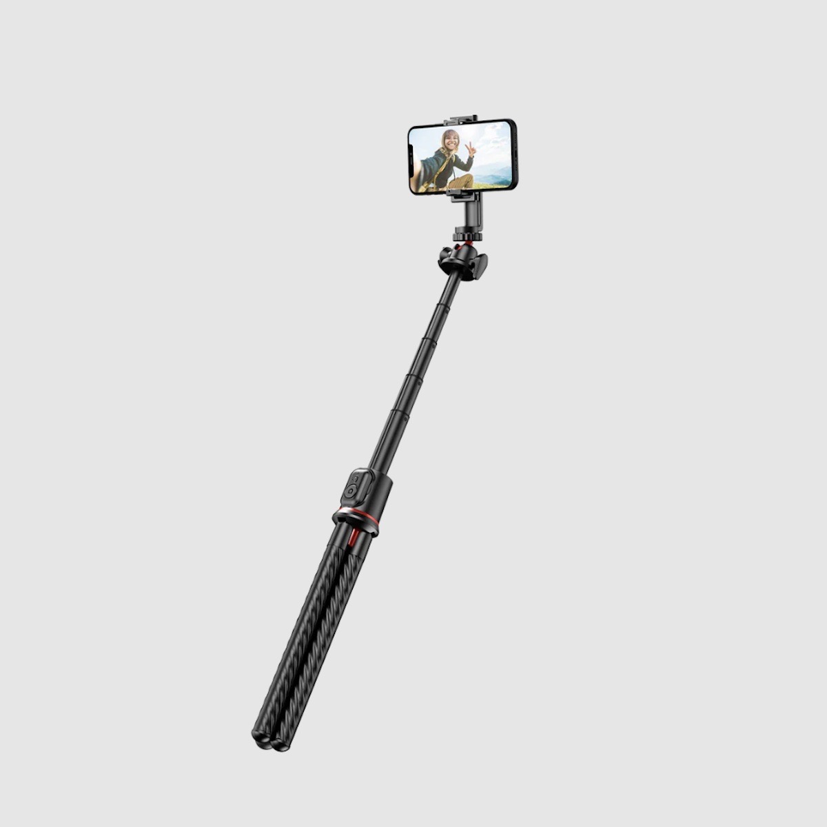 Die ausziehbare Teleskopstange erweitert die Einsatzmöglichkeiten des Stativs, ideal für Selfies, Gruppenfotos oder ungewöhnliche Aufnahmewinkel in der Vogel- oder Froschperspektive.