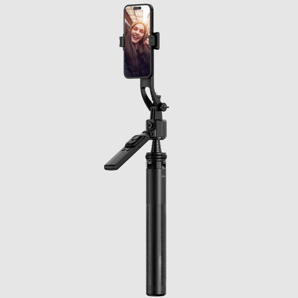 Im Vergleich zu herkömmlichen Selfie-Sticks oder Stativen bietet der Rollei Easy Creator Quadpod AI durch die AI-gestützte Gesichtserkennung, Gestensteuerung und motorisierte 360°-Drehung eine deutlich höhere Funktionalität. Während andere Modelle meist auf manuelle Bedienung beschränkt sind, überzeugt dieses Modell mit automatischer Nutzerverfolgung und präziser Steuerung – ideal für moderne Content Creator.