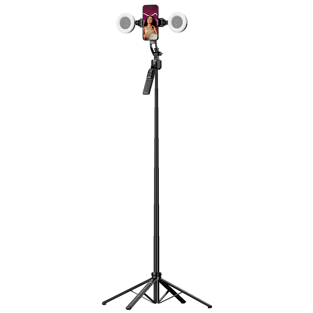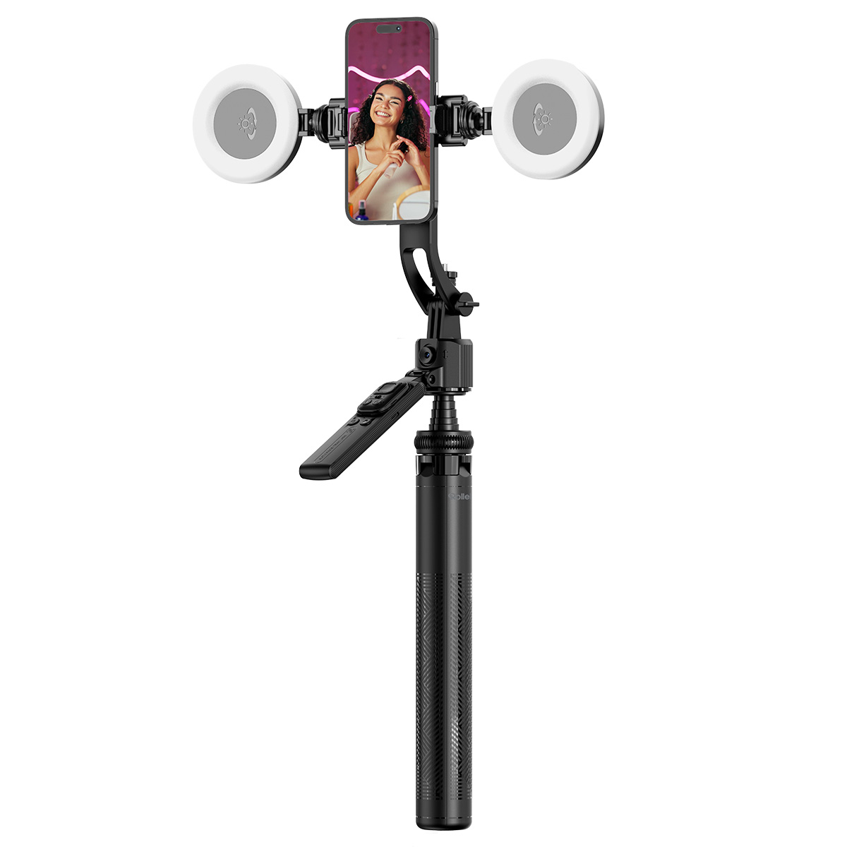 Das Rollei Easy Creator Quadpod-LED Kit kombiniert ein stabiles Quadpod-Stativ mit AI-Tracking-Technologie und zwei kompakten LED-Lichtern. Es ermöglicht flexible Perspektiven durch eine Höhe von bis zu 1,63 m, unterstützt verwacklungsfreie Aufnahmen und bietet zusätzliche Beleuchtung für kreative Video- und Fotoaufnahmen. Dank intelligenter Gesichtserkennung und Gestensteuerung ist es besonders vielseitig für mobile Content-Erstellung einsetzbar.