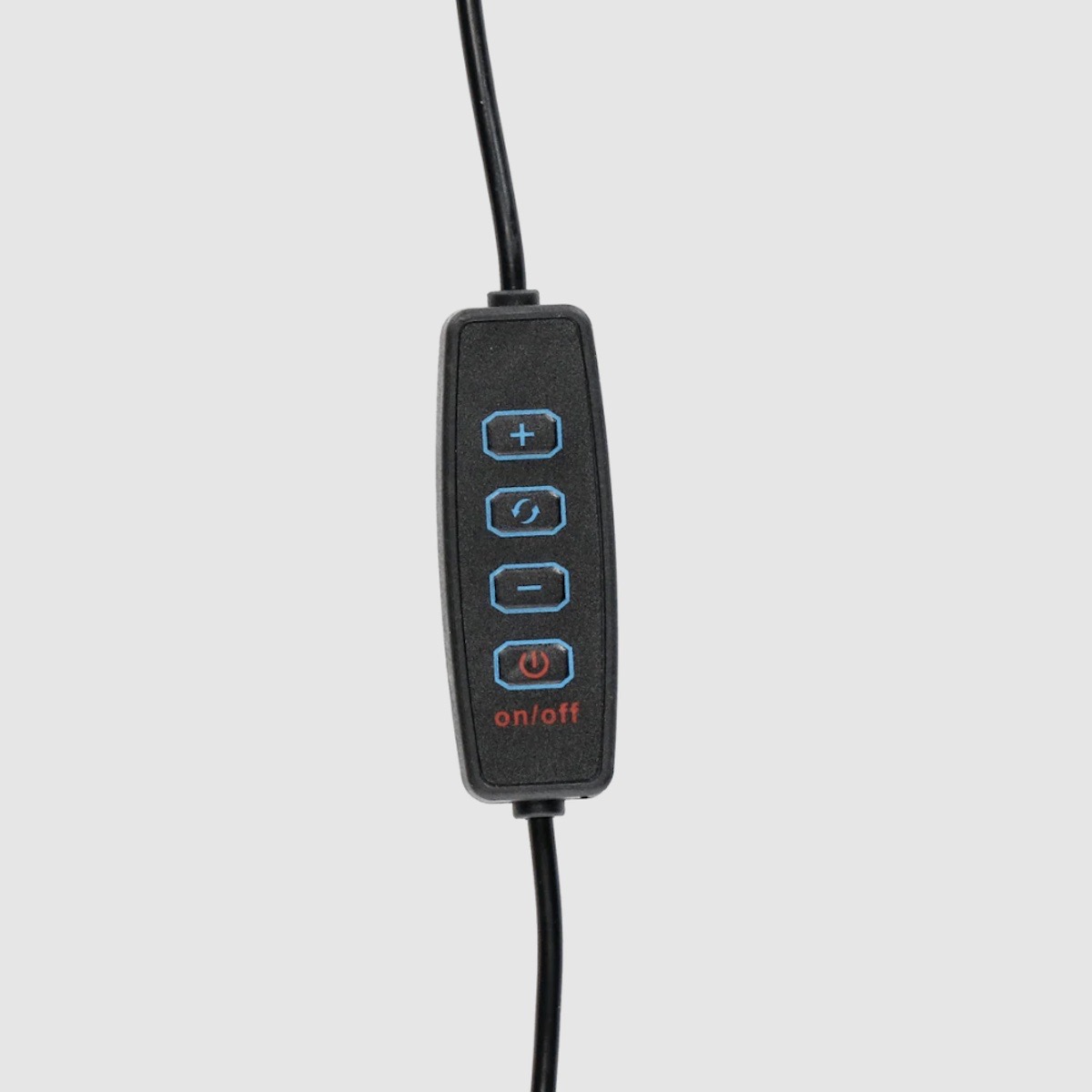 Die Helligkeit des Lichts kann in zehn Stufen direkt über die im Kabel integrierte Steuerung angepasst werden. So lässt sich das Licht schnell und intuitiv anpassen, ohne zusätzliche Apps oder Geräte. Der horizontal schwenkbare LED-Ring ermöglicht eine gezielte Lichtführung und eine präzise Ausleuchtung des Motivs.