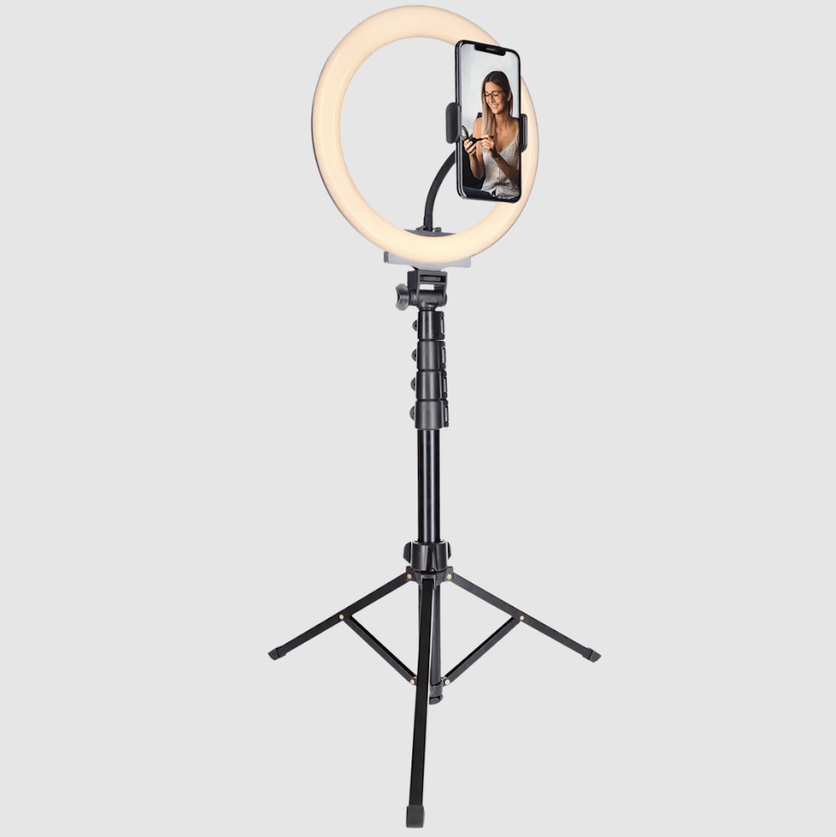 Das Set beinhaltet neben dem Ringlicht ein stabiles Aluminium-Stativ mit einer maximalen Höhe von 160 cm sowie eine verstellbare Smartphone-Halterung für Geräte mit einer Breite von 6,5 bis 9 cm. Dadurch ist das Lumis Comfort Bi-Color auch für verschiedene Setups und Anwendungen geeignet – sei es am Schreibtisch, im Studio oder unterwegs.