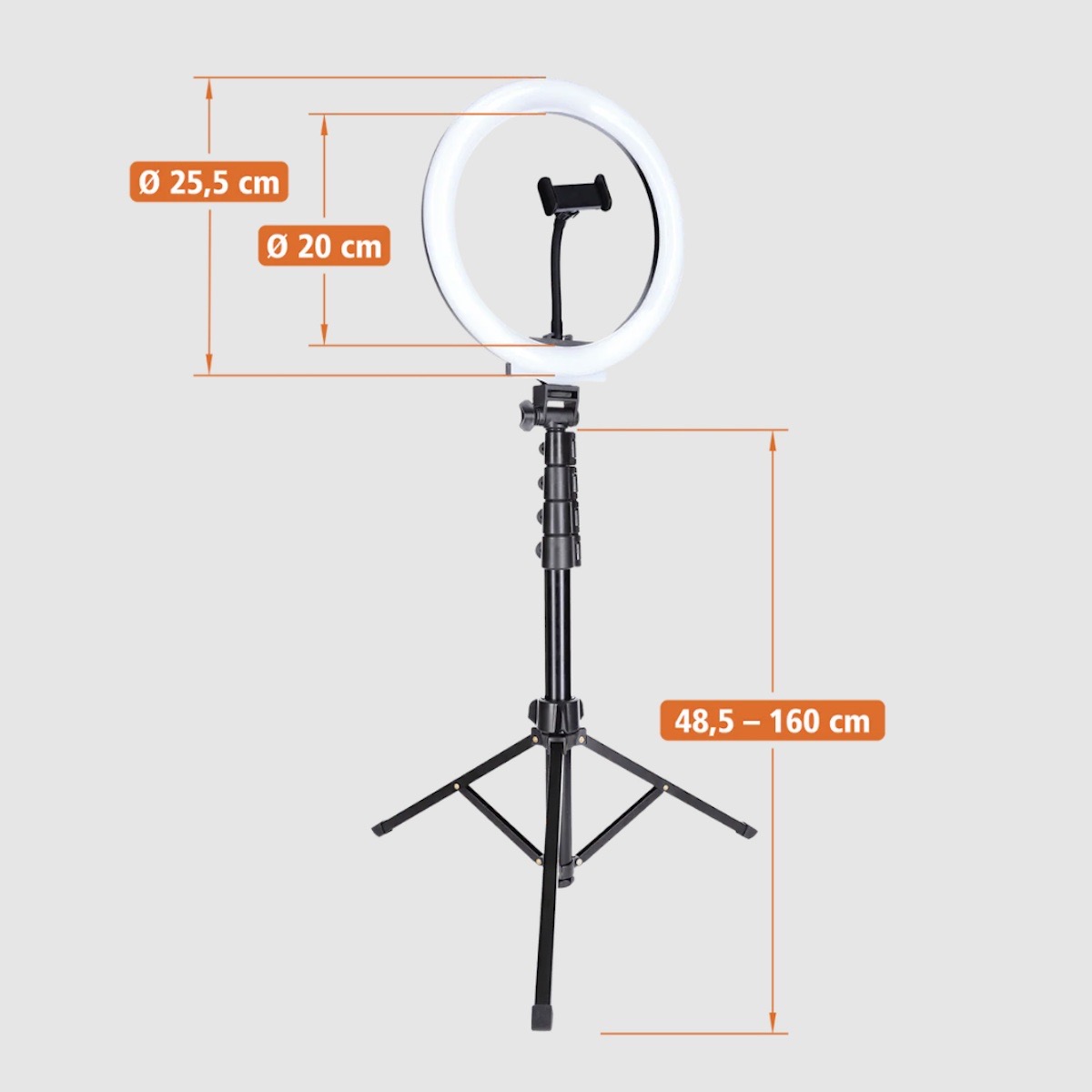 Maße Ringlicht | 25,5 x 20 x 2,7 cm (Außen-Ø: 25,5 cm, Innen-Ø: 20 cm) |