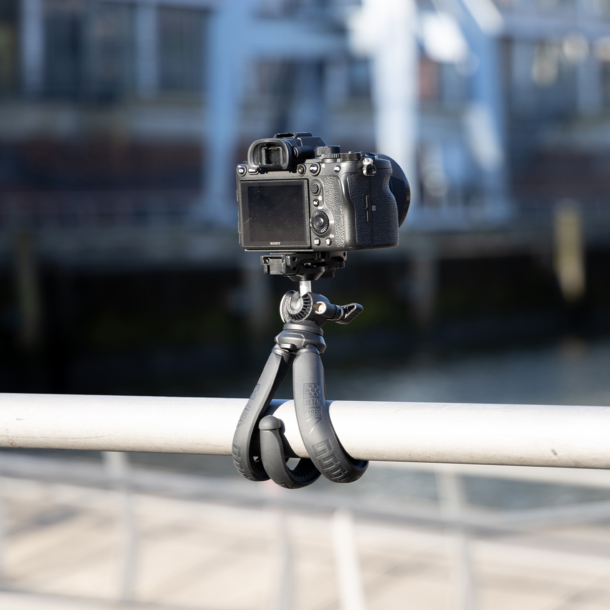 Die Beine des Stativs sind extrem flexibel und rutschfest, wodurch sie sich an unterschiedlichste Oberflächen und Gegenstände anpassen lassen. Dies erhöht die Stabilität auch bei unebenem Untergrund oder ungewöhnlichen Befestigungspunkten.