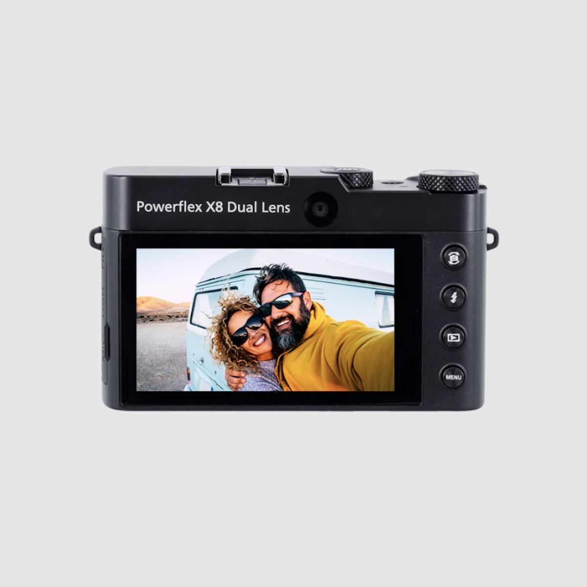 Im Vergleich zu klassischen Kompaktkameras bietet die Powerflex X8 Dual Lens zwei vollwertige Objektive und eine deutlich höhere Foto- sowie Videoauflösung. Sie verbindet die Flexibilität eines Smartphones mit der Bildqualität einer hochwertigen Kamera – ideal für anspruchsvolle Nutzer.