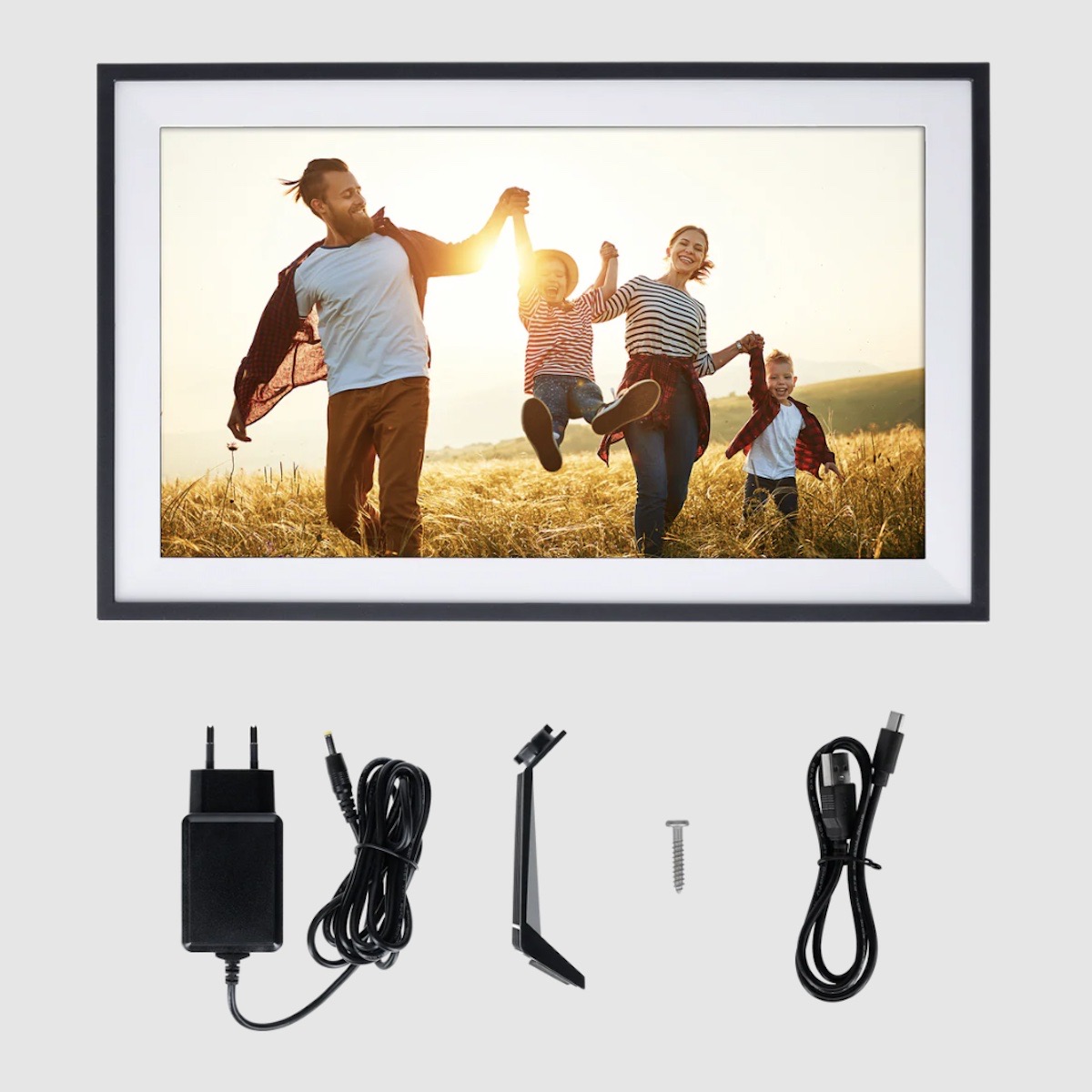Das IPS-Panel mit einer Bildschirmdiagonale von 15,6 Zoll und einer Full-HD-Auflösung (1920 × 1080 Pixel) stellt Inhalte in brillanter Farbtreue und mit breitem Betrachtungswinkel dar. Dank Touch-Funktion lässt sich der Rahmen intuitiv und direkt bedienen.
