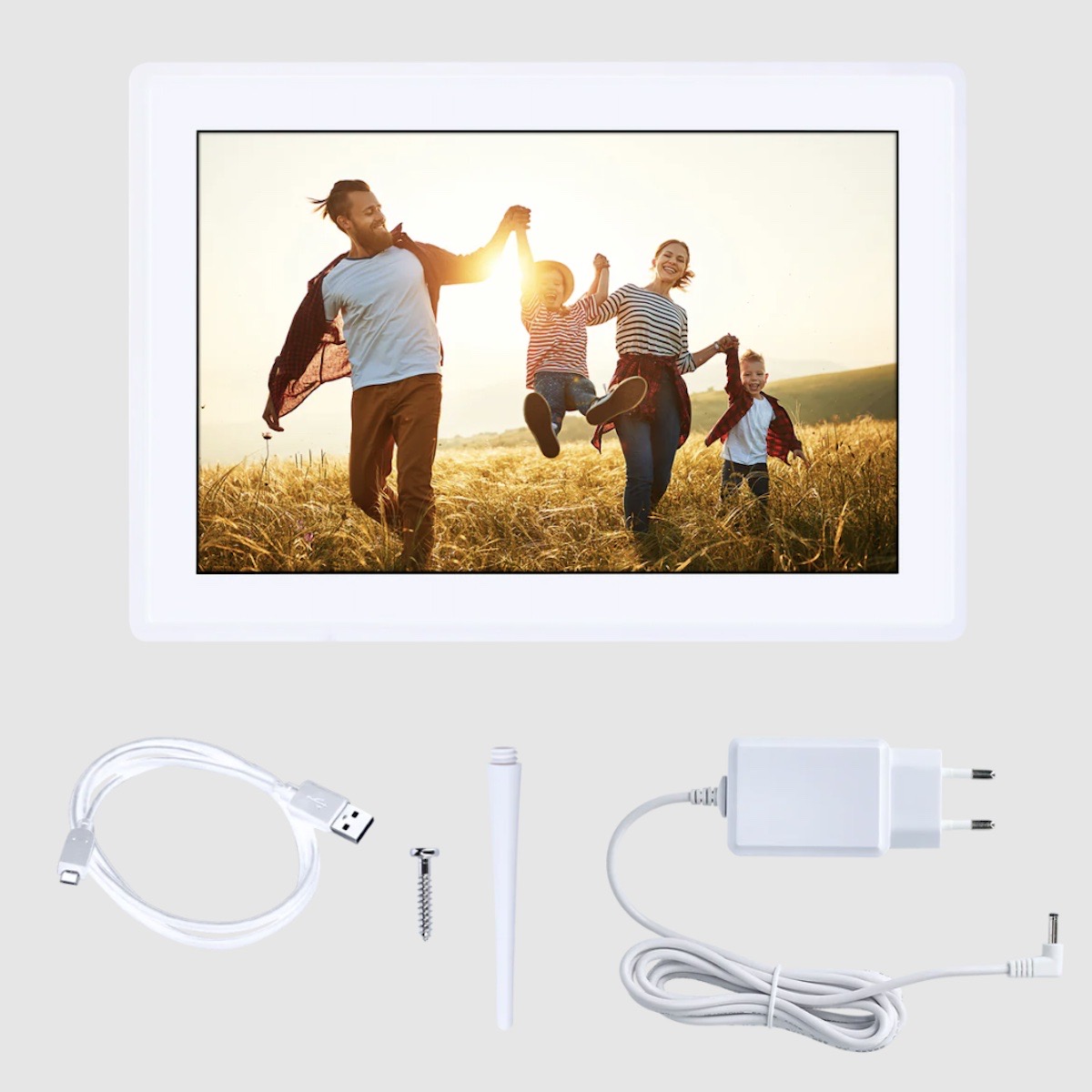 Der Rollei Smarter Bilderrahmen Wifi 100 Weiß bietet eine moderne Möglichkeit, digitale Erinnerungen in brillanter Qualität zu präsentieren. Mit einem 10,1-Zoll-Touchscreen, integriertem 32 GB Speicher, Frameo-App-Kompatibilität und flexibler Aufstellung überzeugt der smarte Bilderrahmen als vielseitige Lösung für die einfache Darstellung und drahtlose Übertragung von Fotos und Videos. Zielgruppe sind technikaffine Nutzer, die ihre schönsten Momente mit Familie und Freunden teilen möchten. Hauptanwendungsbereich ist das heimische Wohnzimmer oder Büro als dekorativer digitaler Bilderrahmen.