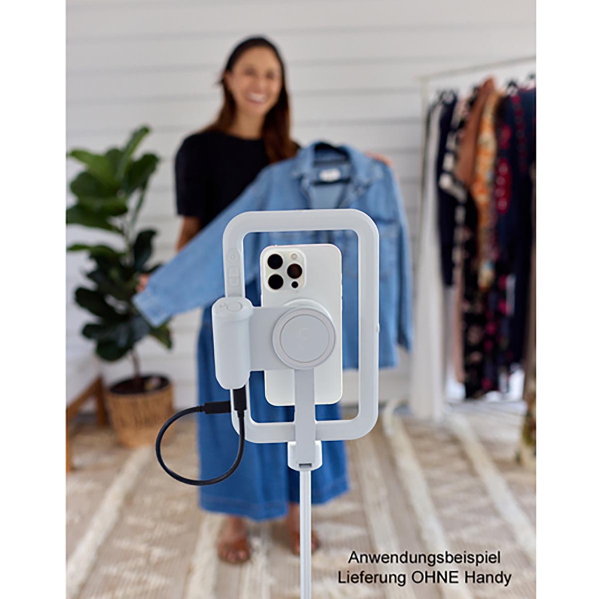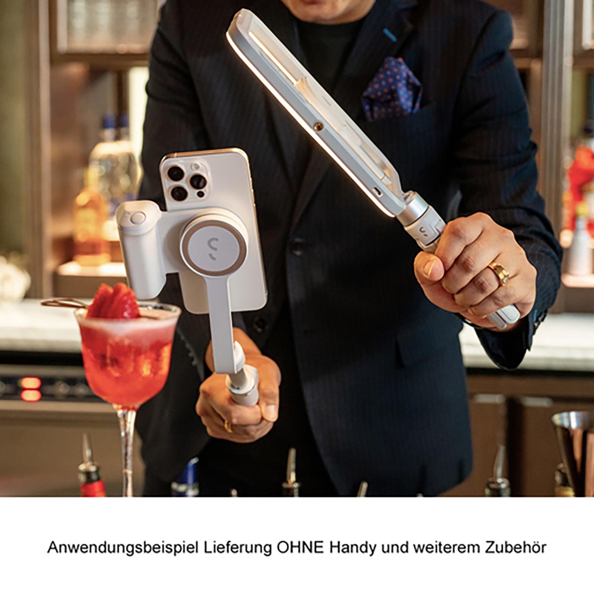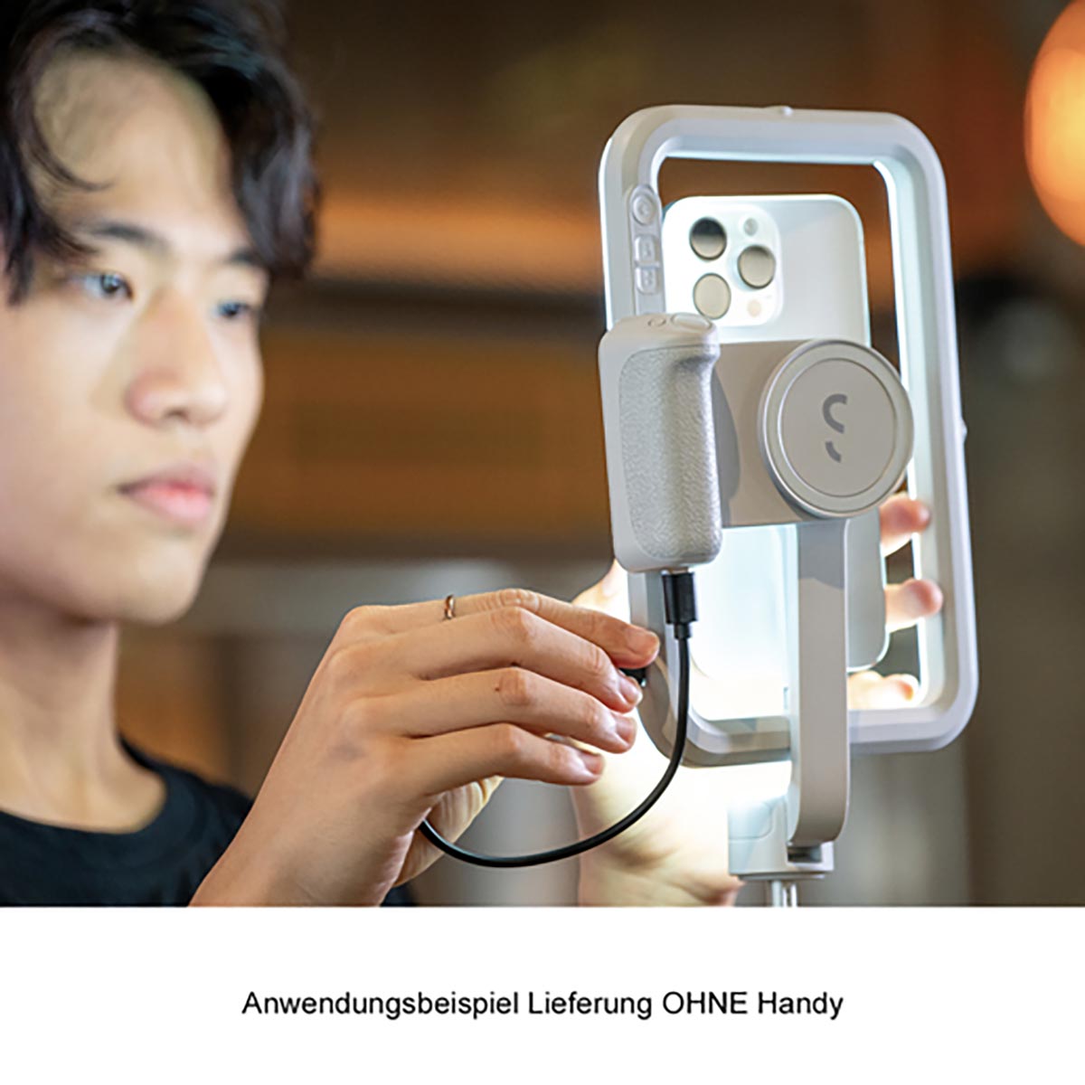 Das Set ist kompatibel mit iPhones, die über MagSafe verfügen (iPhone 12 oder neuere Generationen), sowie mit Android- oder iPhone-Smartphones, sofern eine Hülle mit magnetischem Ring verwendet wird. Das magnetische System ermöglicht einen schnellen Wechsel zwischen Hand-Setup und Stativ-Setup und unterstützt dadurch effiziente Workflows bei wechselnden Drehorten oder Content-Formaten.