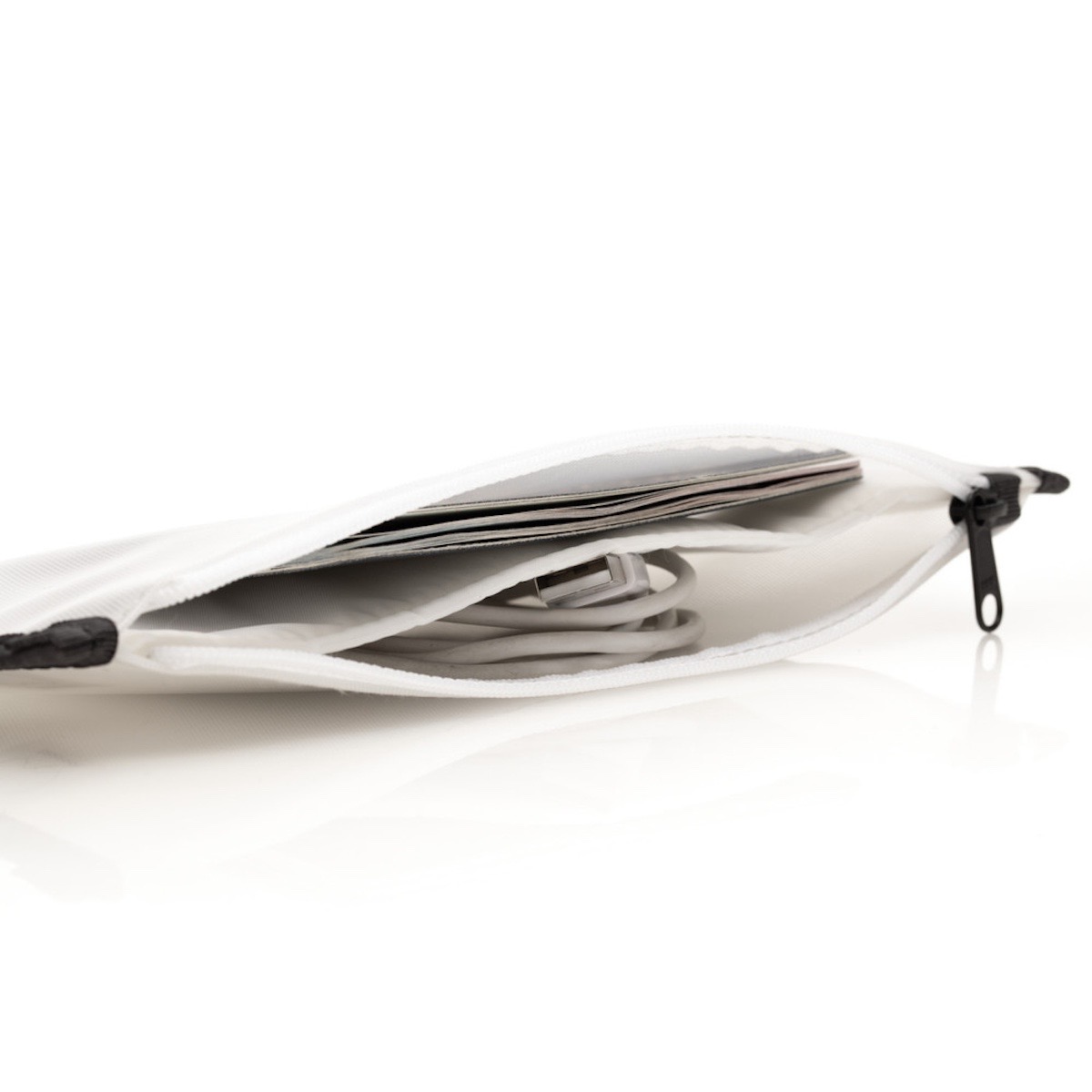 Mit einem Gewicht von nur 30 g und extrem flachen Abmessungen lässt sich das Etui unauffällig im Rucksack oder Reisegepäck verstauen. Es eignet sich ideal als dauerhafter Bestandteil des persönlichen Reise-Equipments.