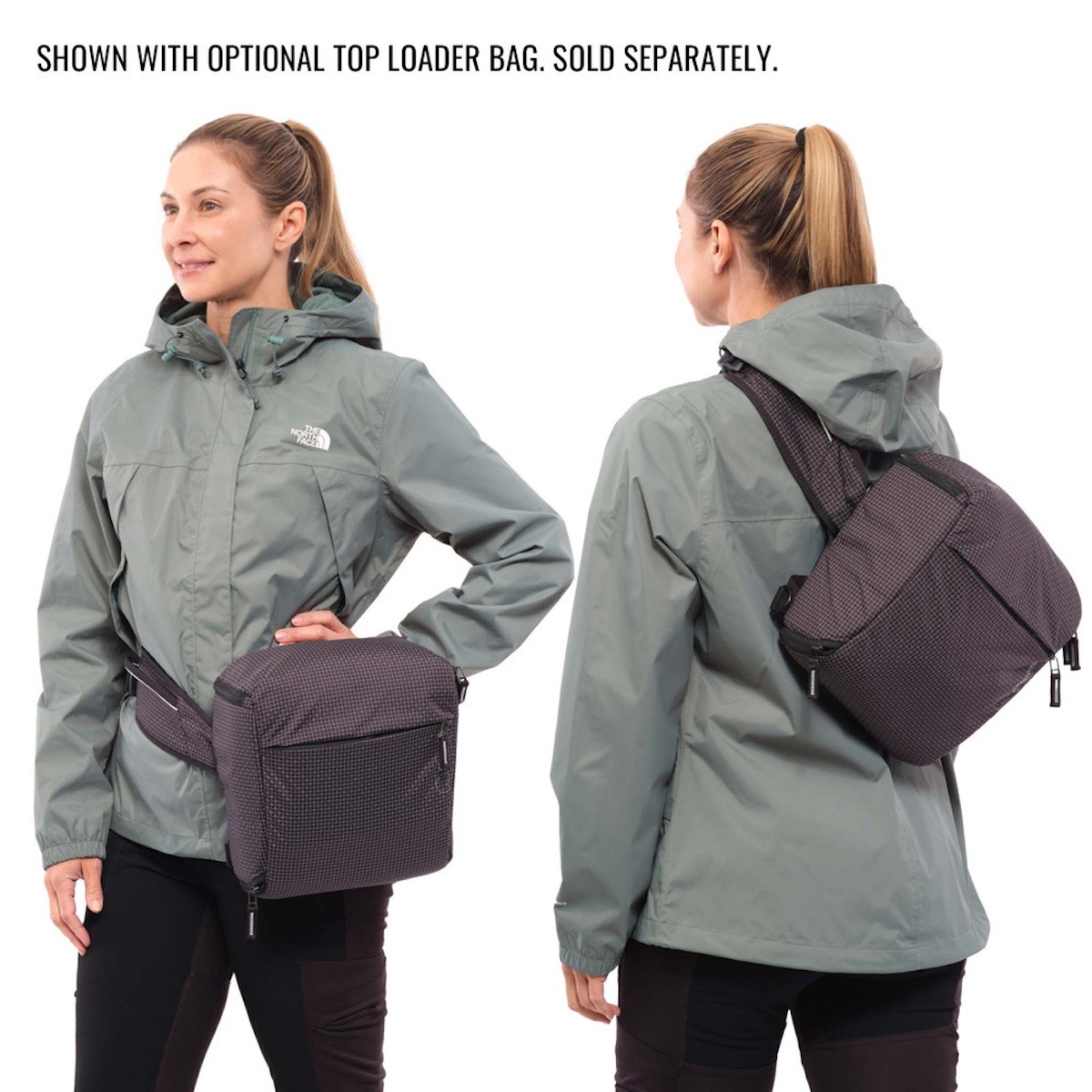 Der Shimoda Sidecountry 28 ist mit den separat erhältlichen Shimoda Top Loader-Einsätzen (S, M, L) kompatibel. Diese lassen sich flexibel im Rucksack integrieren oder als Sling, Schulter- oder Hüfttasche nutzen. Dadurch passt sich das System optimal an wechselnde Aufnahmesituationen an.