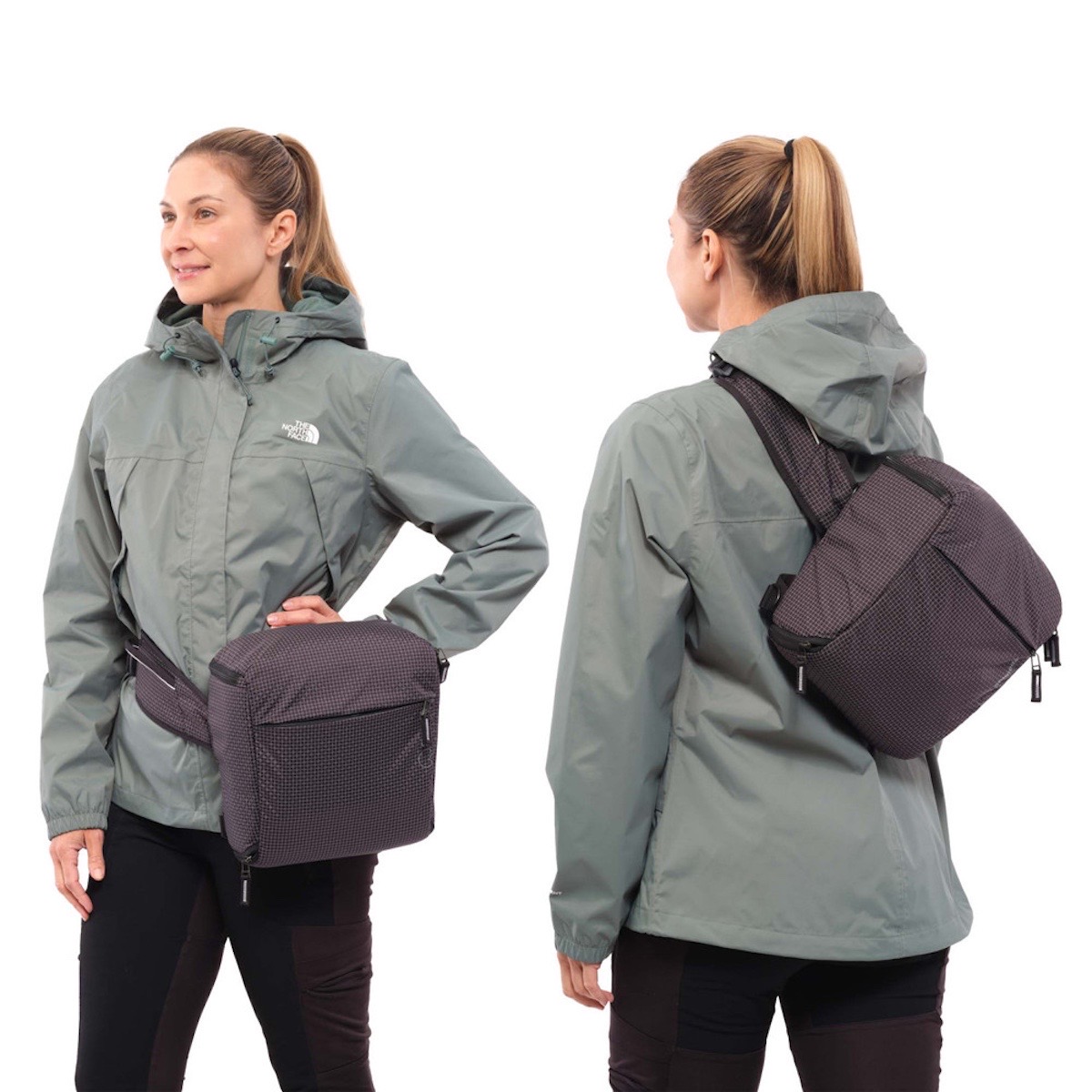 - Modulares Top Loader-System: Enthält einen mittleren Kameraeinsatz, der als Sling-, Hüft- oder Rucksack-Inlay verwendet werden kann.