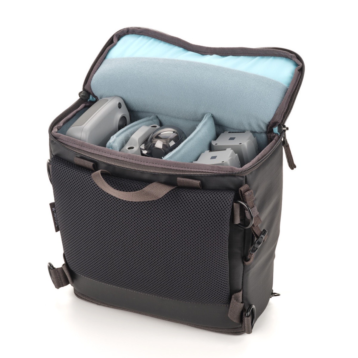 Die Innenmaße und Trennwände sind so gestaltet, dass Kameragehäuse ohne Batteriegriff sowie kompakte Drohnen wie die DJI Mavic sicher und passgenau verstaut werden können. Die anpassbare Innenstruktur gewährleistet optimalen Schutz.