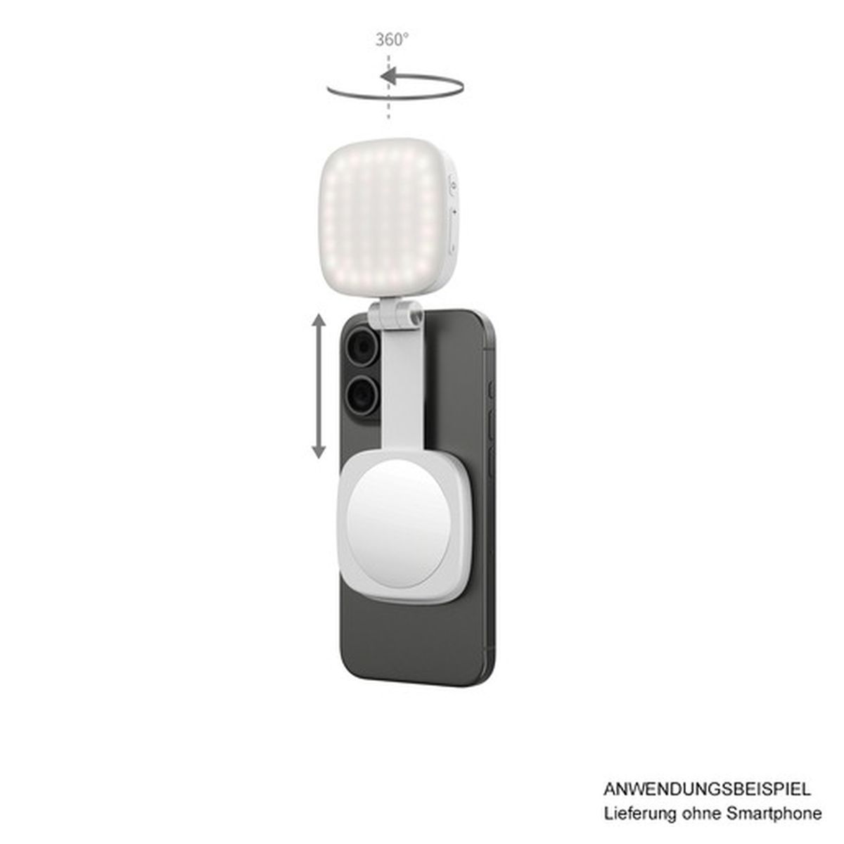 Der integrierte Mini-Dual-Axis-Kopf erlaubt eine vollständige 360°-Drehung sowie eine Neigung von bis zu 270°. Diese Konstruktion ermöglicht eine präzise Anpassung der Lichtausrichtung an unterschiedliche Aufnahmesituationen.