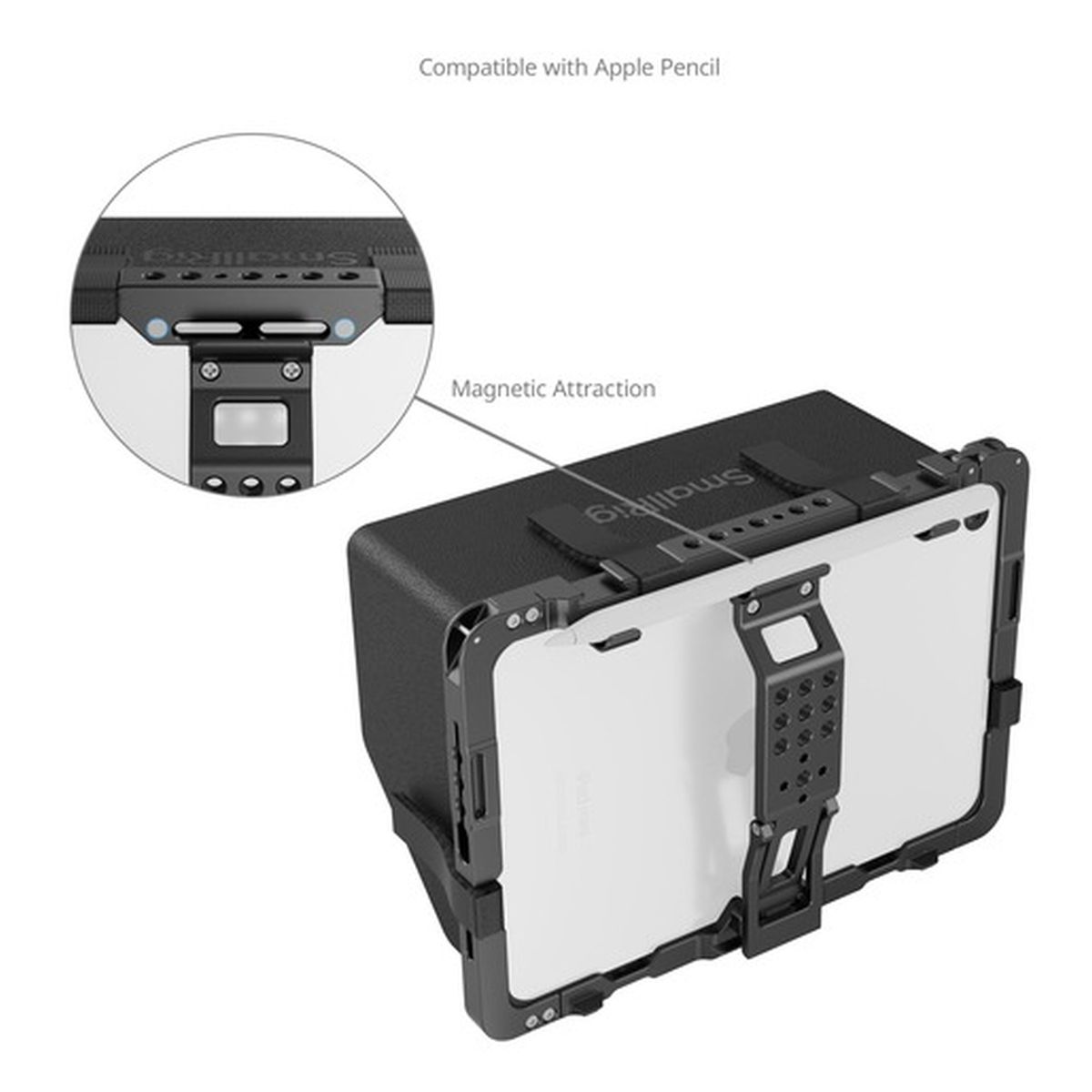 Der SmallRig 5058 Cage für iPad mini 6 und A17 Pro ist ein speziell entwickelter Tablet-Käfig, der eine stabile, schützende und vielseitige Grundlage für professionelle Anwendungen bietet. Mit präziser Passform, integrierten Gummipads und zahlreichen Befestigungspunkten ermöglicht dieser Cage die flexible Montage von Zubehör wie externen Akkus, SSDs oder Griffen. Die abnehmbare Sonnenblende, der verstellbare Ständer und die magnetische Pencil-Halterung erweitern die Funktionalität und machen das System zu einem vielseitigen Werkzeug für Monitor- und Rig-Setups.