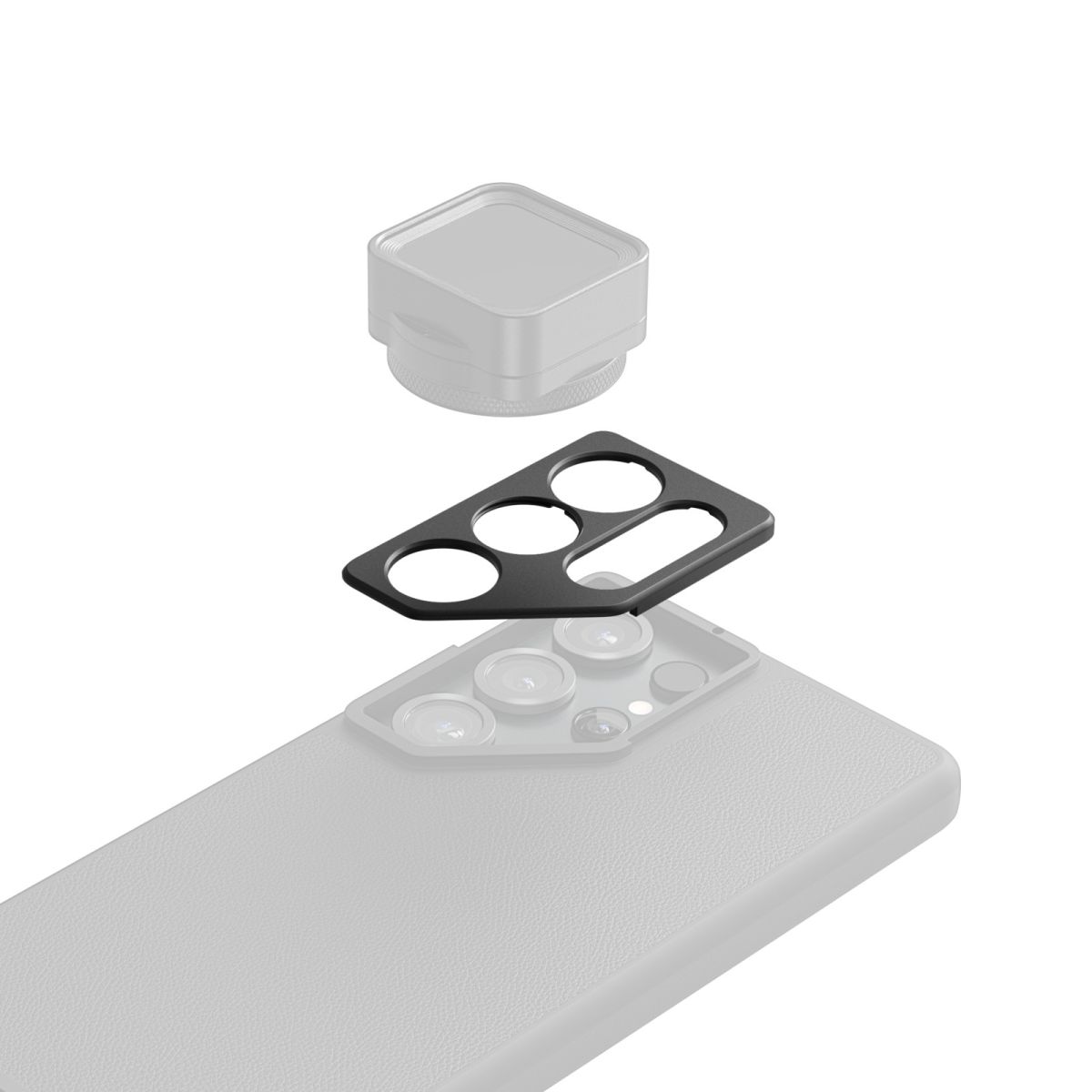 Dank der werkzeuglosen Slide-in-Konstruktion kann die Montageplatte schnell in das kompatible Smartphone-Gehäuse eingesetzt oder daraus entfernt werden. Dies erleichtert den flexiblen Wechsel zwischen unterschiedlichen Objektivkonfigurationen.