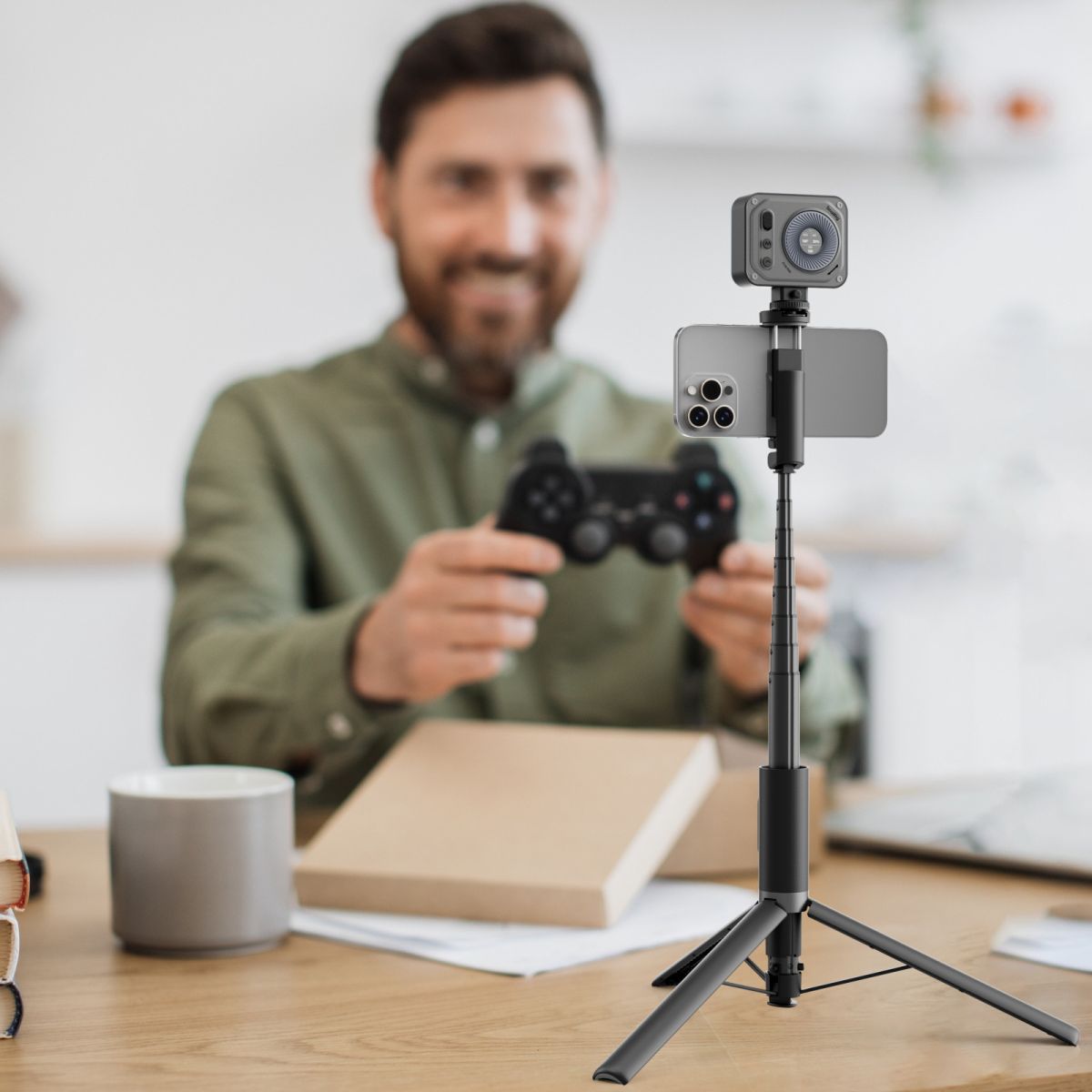 Das Stativ eignet sich für mobile Foto- und Videoaufnahmen, Vlogging, Streaming sowie Gruppenfotos. Durch die kompakte Bauweise und die integrierte Fernbedienung ist es besonders für unterwegs, Reisen und den täglichen Einsatz geeignet.